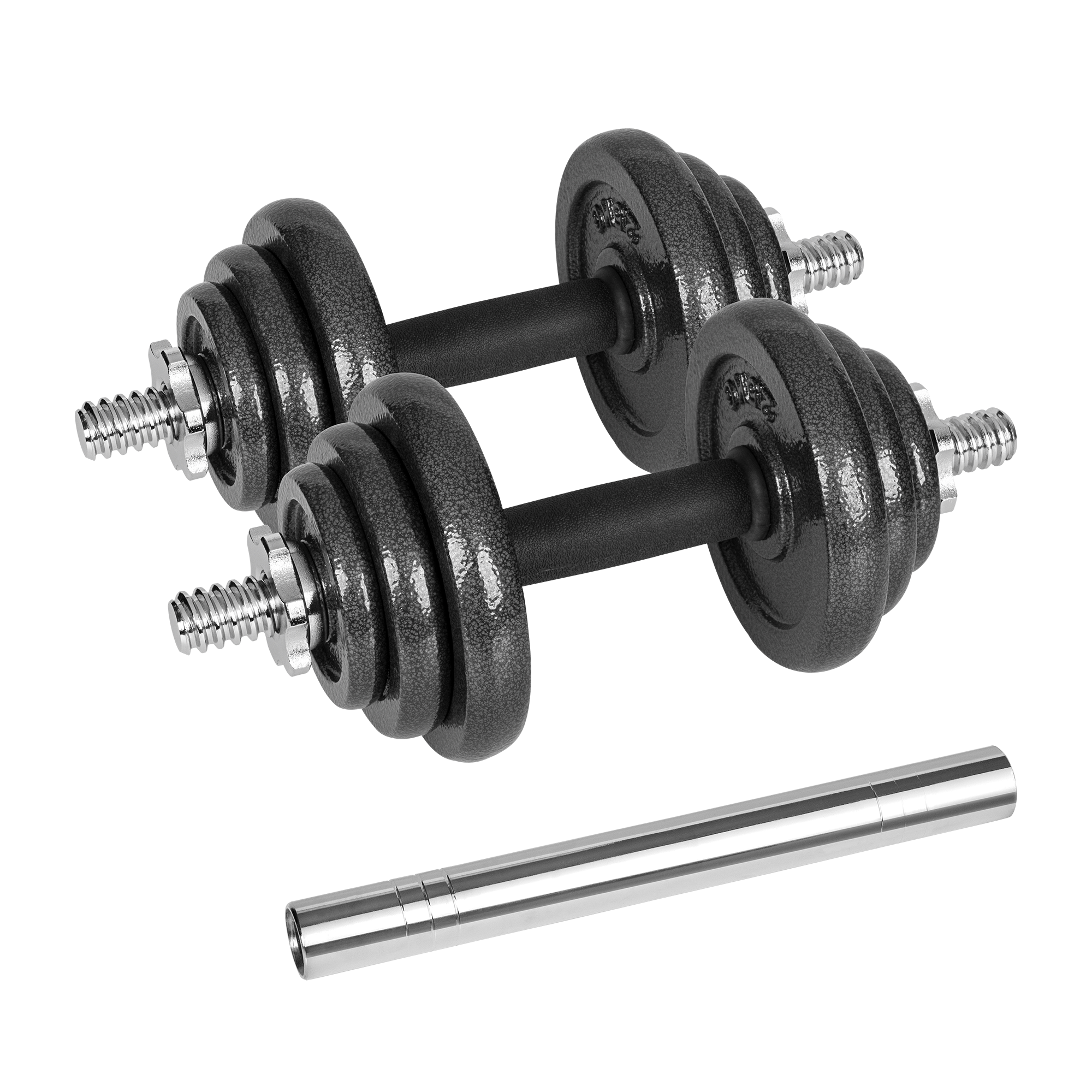Dołączony łącznik pozwala połączyć dwa gryfy w jedną sztangę, co znacząco poszerza zakres ćwiczeń. Dzięki temu w jednym zestawie zyskujesz zarówno hantle, jak i sztangę – idealne rozwiązanie do treningu całego ciała bez potrzeby inwestowania w dodatkowy sprzęt.