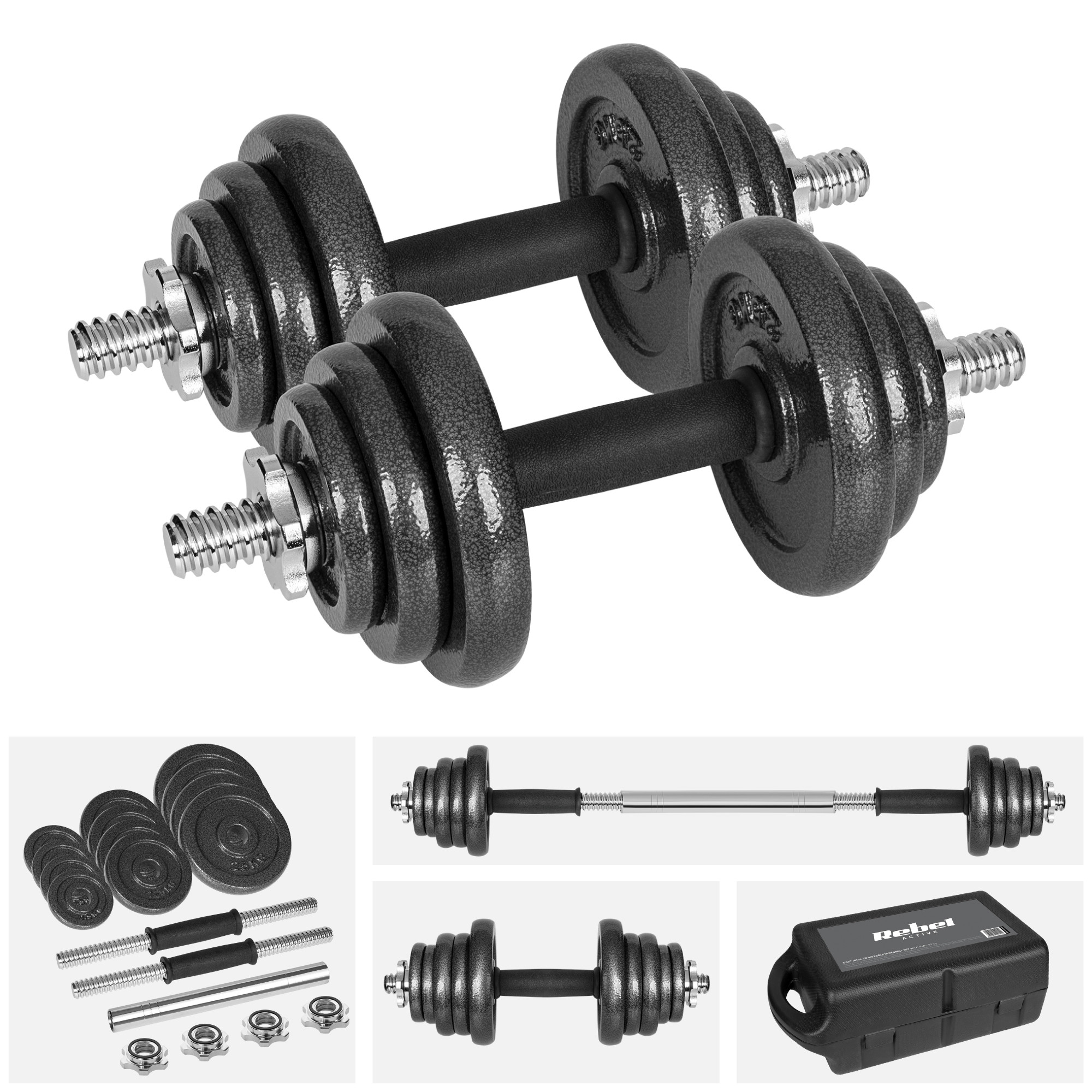 Hantle żeliwne regulowane w walizce z gryfem, zestaw 20kg REBEL ACTIVE