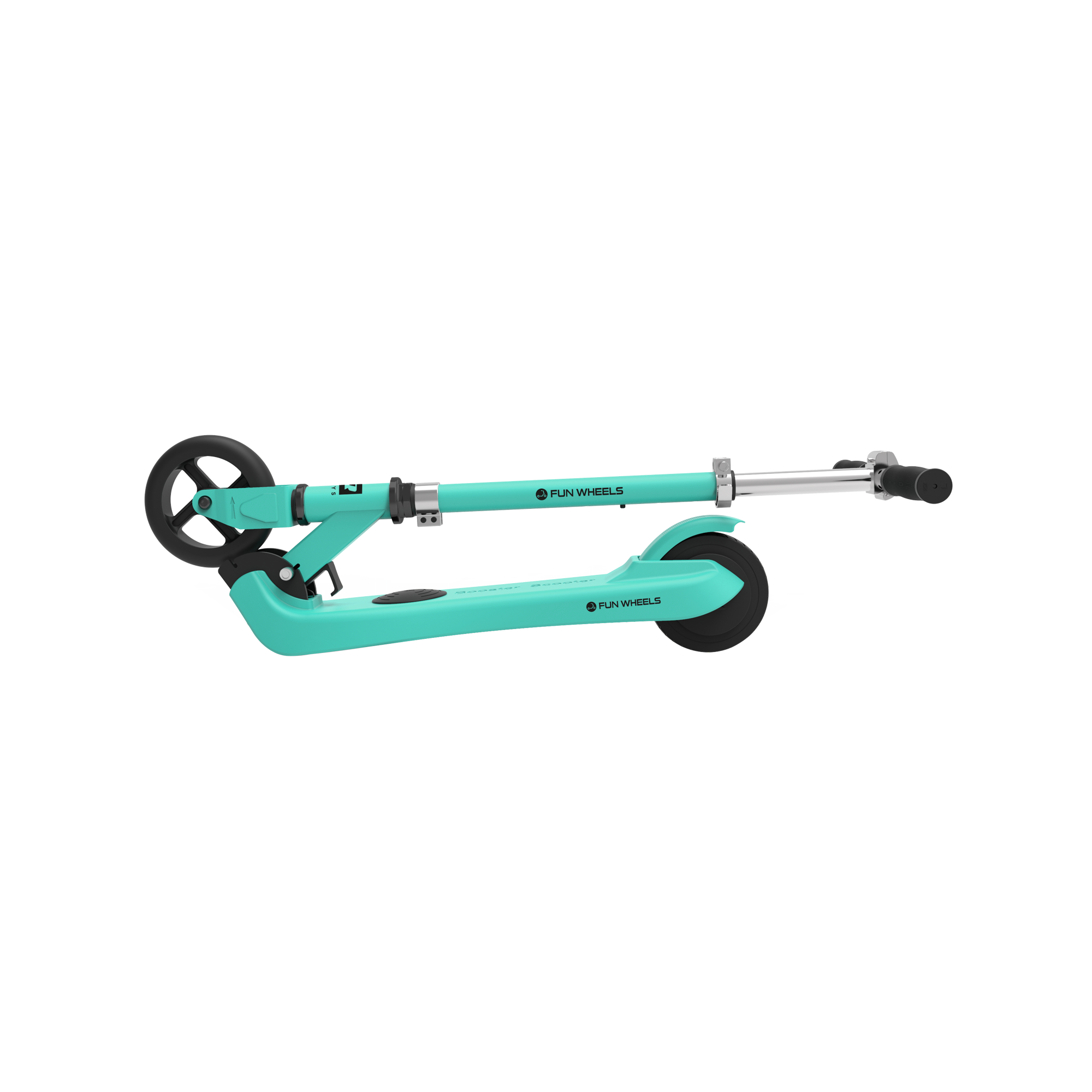 Dziecięca hulajnoga elektryczna Fun Wheels posiada wbudowany w platformę nożny napęd, jednak w przeciwieństwie do tradycyjnych modeli hulajnóg elektrycznych pojazd ten ruszy dopiero po odepchnięciu. To znacznie zwiększa bezpieczeństwo i podnosi komfort podczas jazdy.