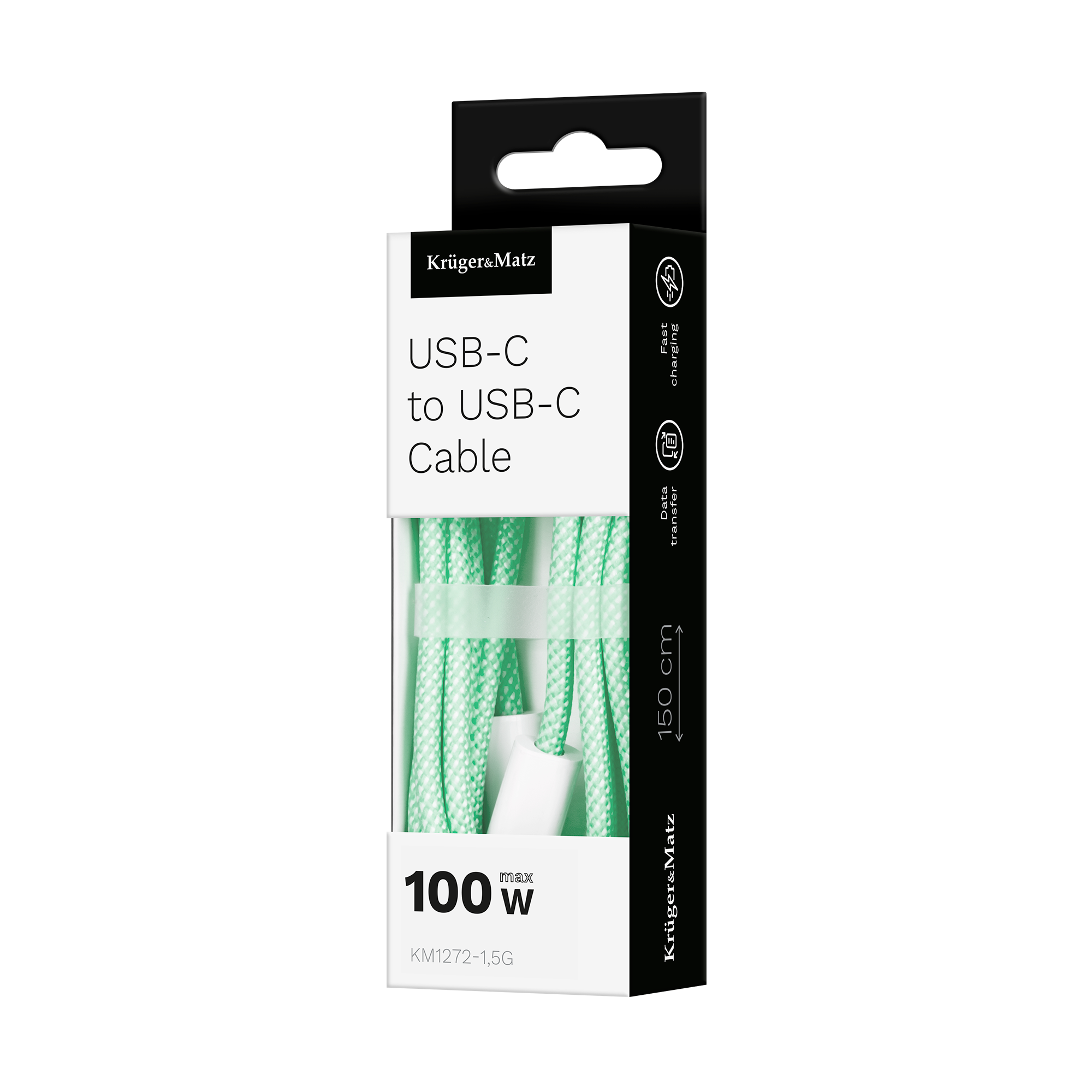 Kabel USB typu C - USB typu C 100 W 1,5 m zielony Kruger&Matz Basic