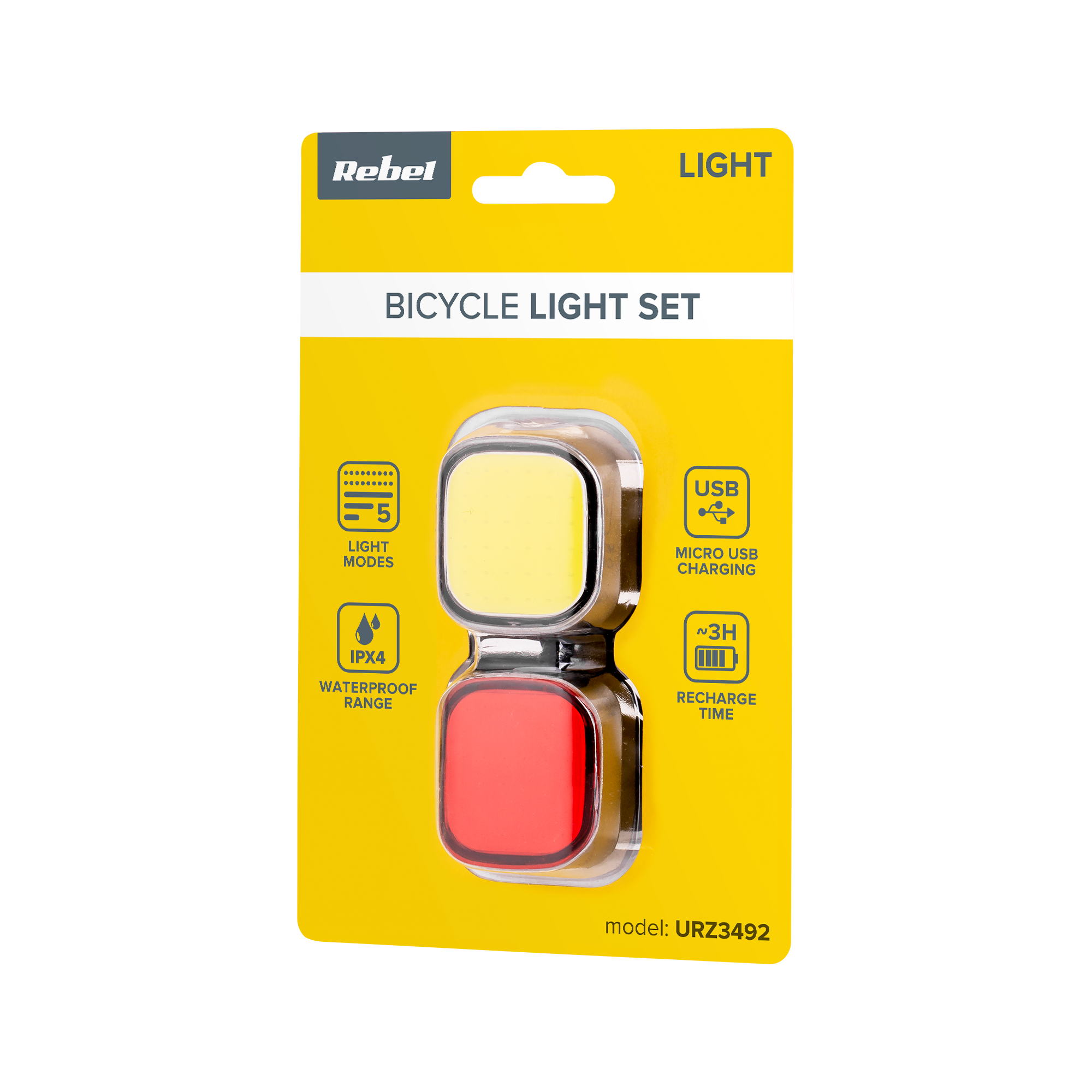 Lampka rowerowa tylna przednia LED USB 2 szt Rebel