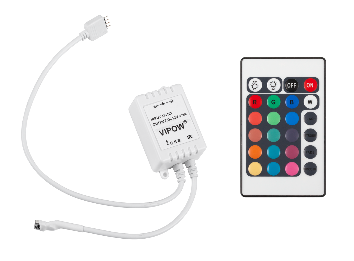 Kontroler jest zaprojektowany do obsługi sznurów diodowych RGB, pozwalając na regulację kolorów oraz tworzenie różnorodnych efektów świetlnych. Dzięki maksymalnej mocy wyjściowej poniżej 72 W i napięciu wejściowemu 12 V DC, urządzenie zapewnia efektywną kontrolę nad oświetleniem, dostosowując je do indywidualnych potrzeb.