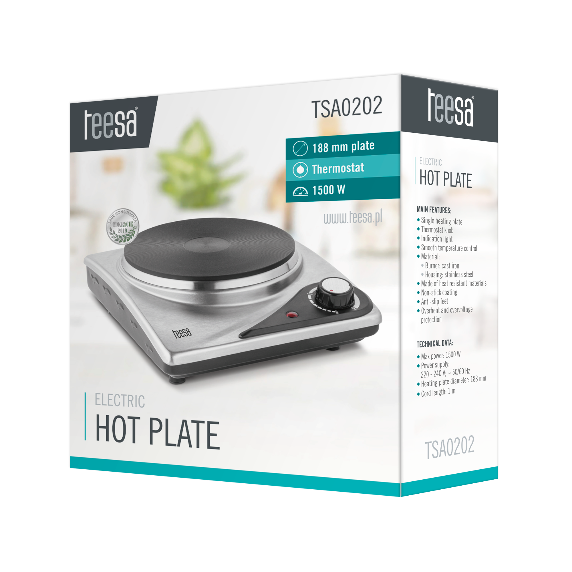 O wysokiej jakości przenośnej kuchenki turystycznej Teesa świadczą zastosowane odporne na ciepło materiały. Model TSA0202 wykonany jest ze stali nierdzewnej z nieprzywierającą powłoką, która zdecydowanie ułatwia czyszczenie. Stabilną i bezpieczną pracę gwarantują stopki antypoślizgowe oraz funkcja zabezpieczania przed przegrzaniem i przepięciem.