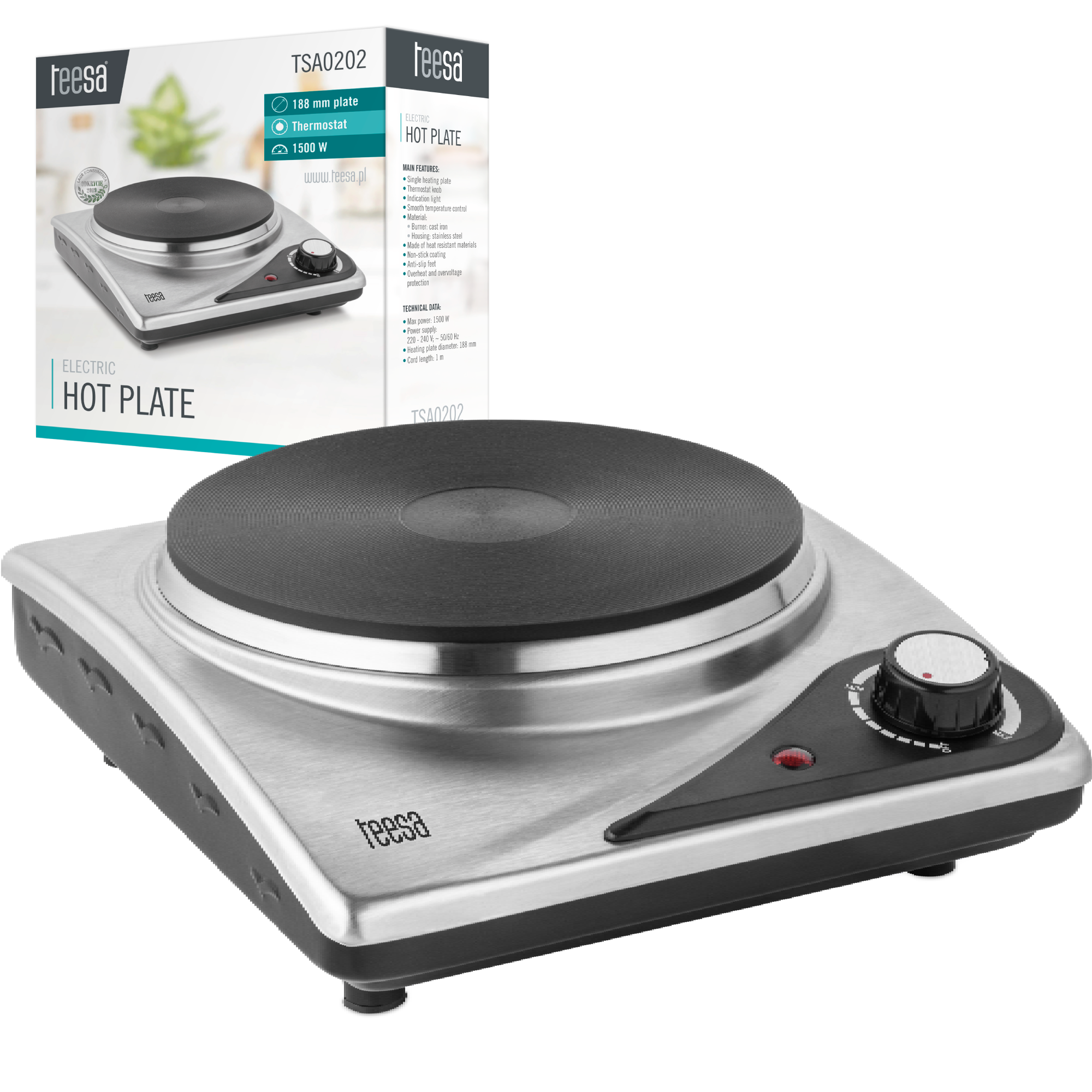 Wybierasz się na kemping i jedyne czego Ci brakuje w wyposażeniu to kompaktowa przenośna kuchenka elektryczna? Wybierz model Teesa TSA0202 o mocy 1500 W z jednym żeliwnym palnikiem. Dzięki maksymalnej temperaturze nawet do 650°C urządzenie pozwoli Ci nie tylko zagotować wodę na herbatę czy kawę, ale także przyrządzić obiad dla całej rodziny. Komfortową obsługę kuchenki turystycznej Teesa zapewnia pokrętło termostatu z lampką kontrolną.