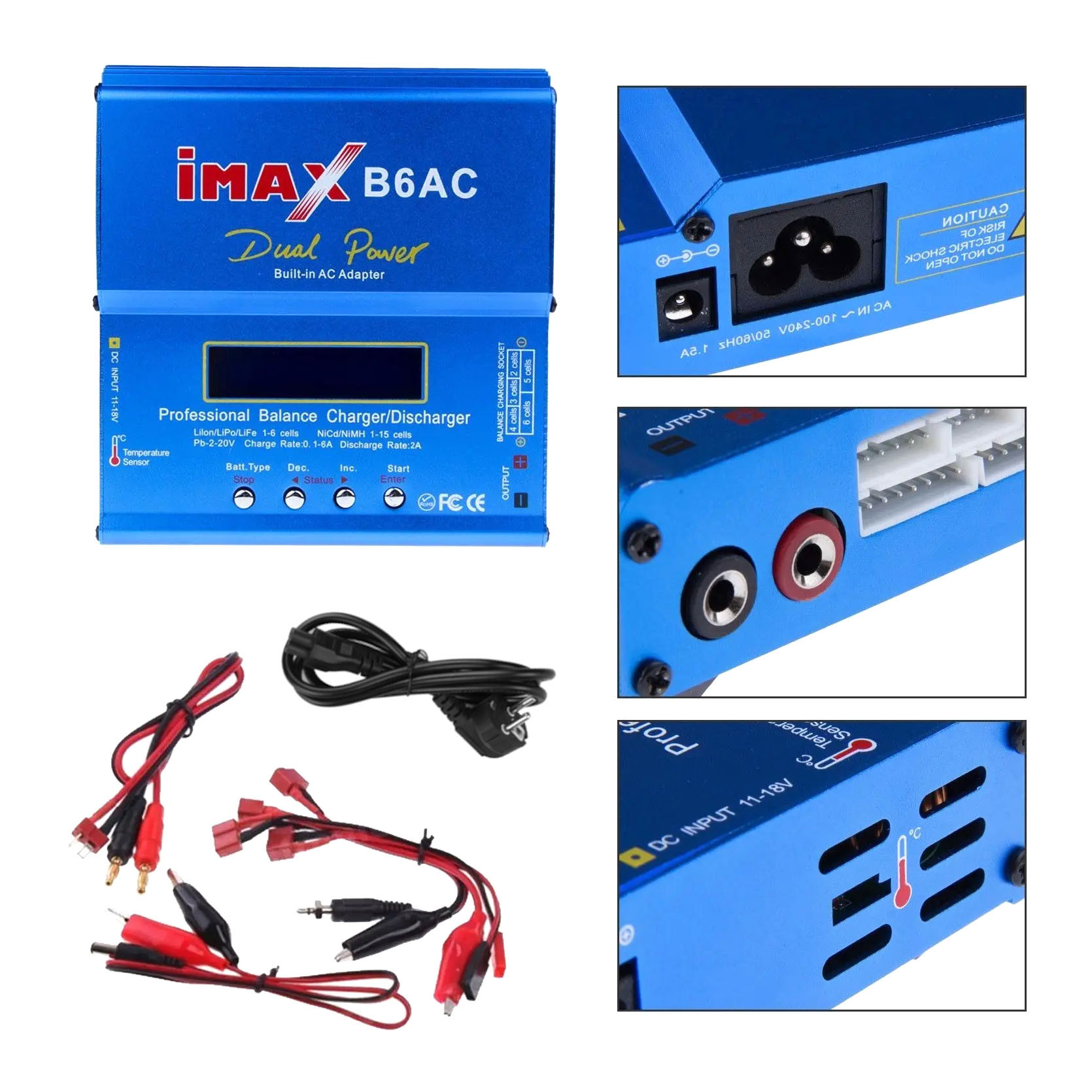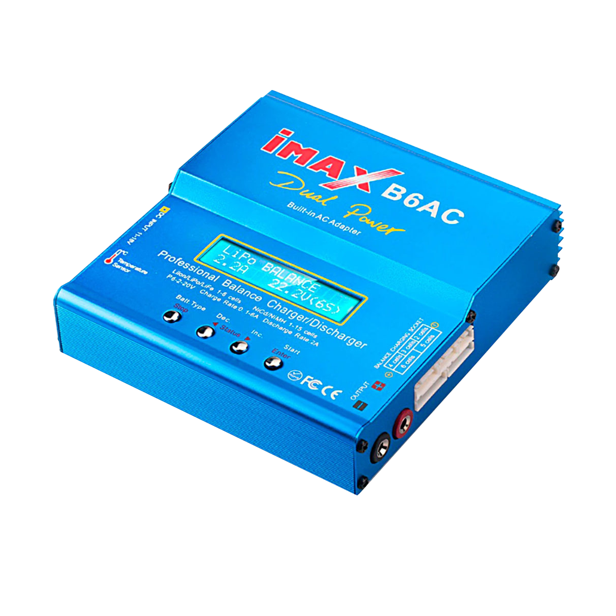 Ładowarka Imax B6AC posiada wbudowany zasilacz, dzięki czemu może być zasilana bezpośrednio z sieci 230V AC. Posiada również wejście dla zasilacza 11-18V DC dzięki czemu możliwe jest użycie zewnętrznego zasilacza lub podłączenie do akumulatora samochodowego.