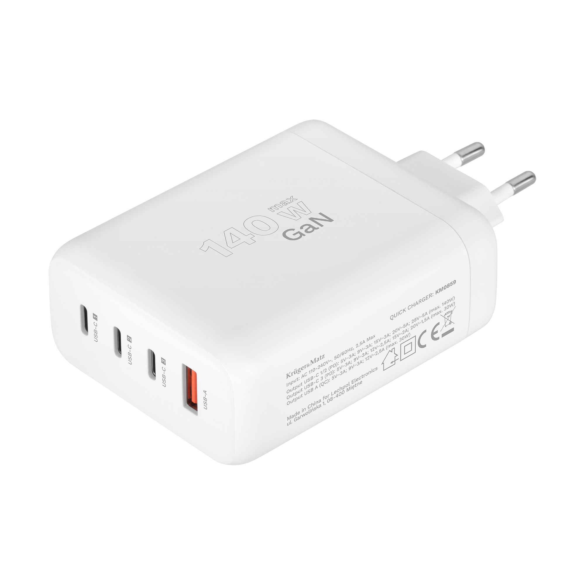 Ładowarka sieciowa Kruger&Matz 140 W GaN z funkcją Quick Charge i Power Delivery