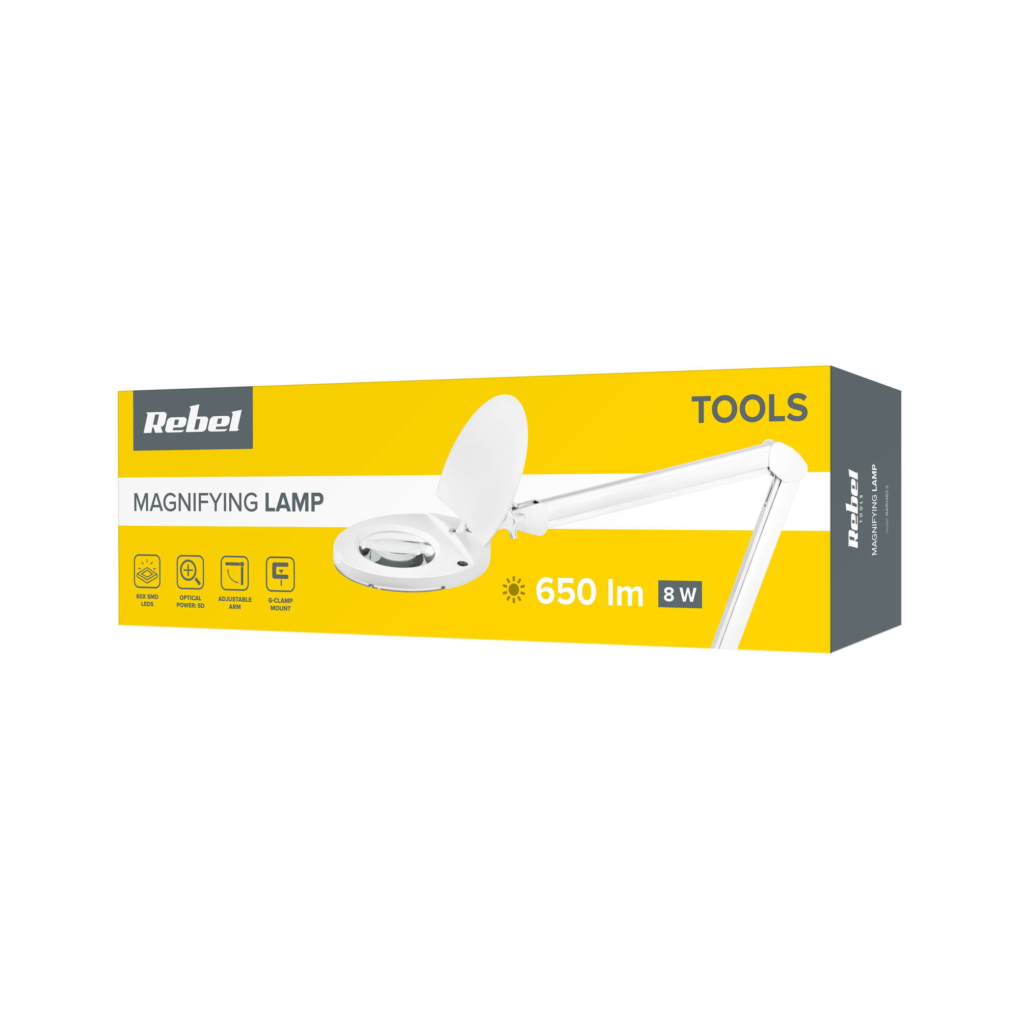 Lampa posiada regulowane ramię, które umożliwia precyzyjne ustawienie światła tam, gdzie jest najbardziej potrzebne. Metalowy zacisk typu G zapewnia stabilne mocowanie do stołu, dzięki czemu lampa jest idealna do użytku w warsztatach, pracowniach i gabinetach.
