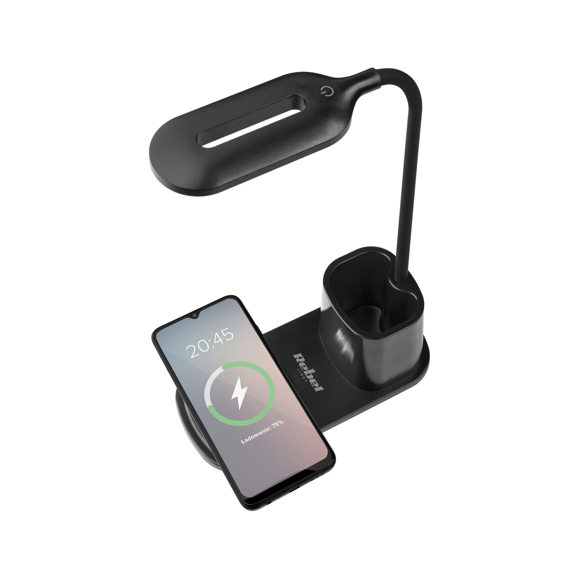 Lampka LED na biurko z ładowarką indukcyjną (czarna)