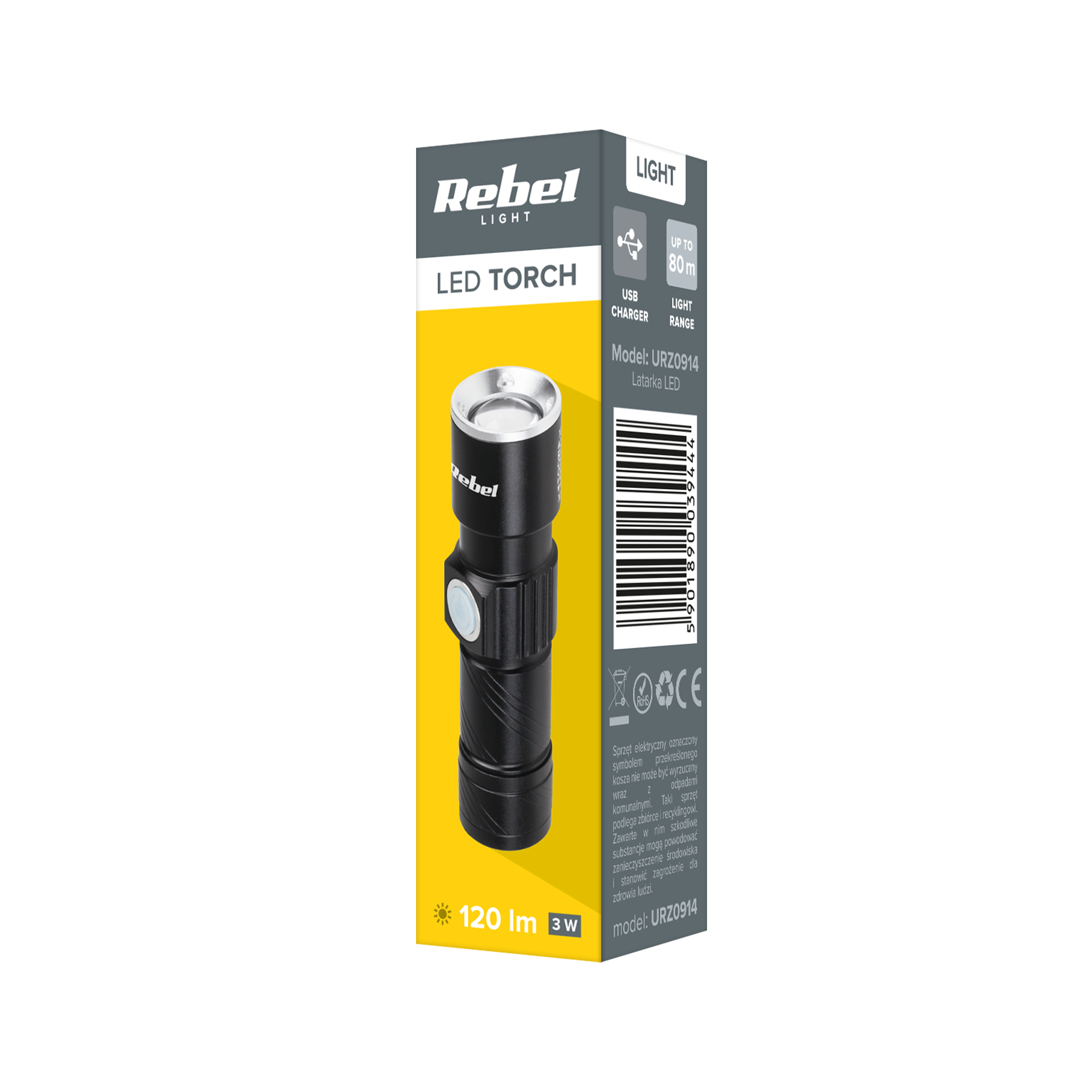 Latarka aluminiowa Rebel o mocy 3 W to idealne narzędzie dla tych, którzy potrzebują intensywnego i skoncentrowanego źródła światła. Emituje strumień świetlny o wartości 120 lumenów, co zapewnia doskonałą widoczność nawet w ciemnych warunkach. Funkcja zoom pozwala na regulację szerokości wiązki światła, umożliwiając dostosowanie oświetlenia do aktualnych potrzeb.