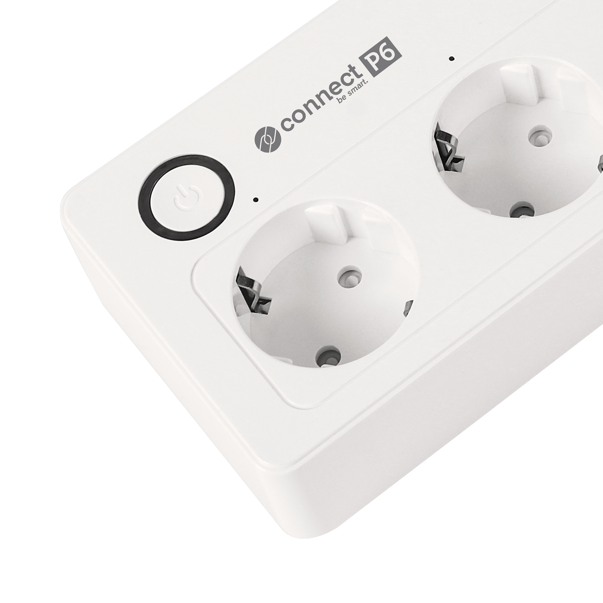 Inteligentny zasilacz wifi Connect P6 wyposażony jest w cztery gniazda typu niemieckiego, które umożliwiają podłączenie różnych urządzeń – od komputerów, przez lampki, po sprzęt RTV. Każde gniazdo możesz włączać i wyłączać osobno, dzięki czemu oszczędzasz energię i zwiększasz bezpieczeństwo.