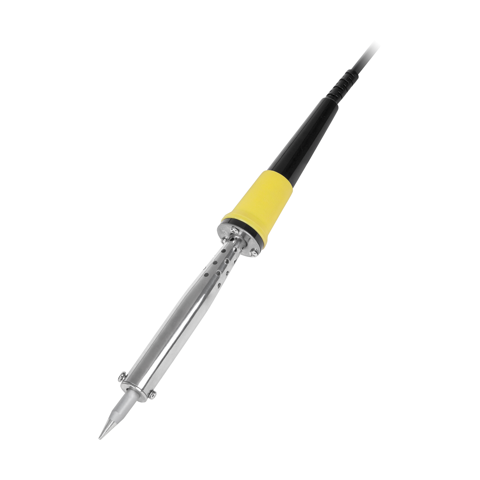 Lutownica mała pl. 100W CE charakteryzuje się kompaktową i lekką konstrukcją, co zapewnia wygodę użytkowania nawet podczas dłuższych sesji pracy. Ergonomiczny uchwyt umożliwia pewne trzymanie narzędzia, co zwiększa precyzję lutowania, szczególnie w przypadku małych i delikatnych komponentów.