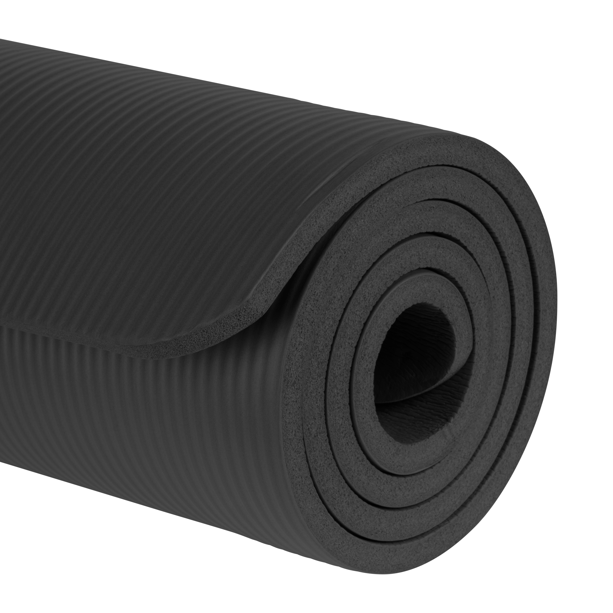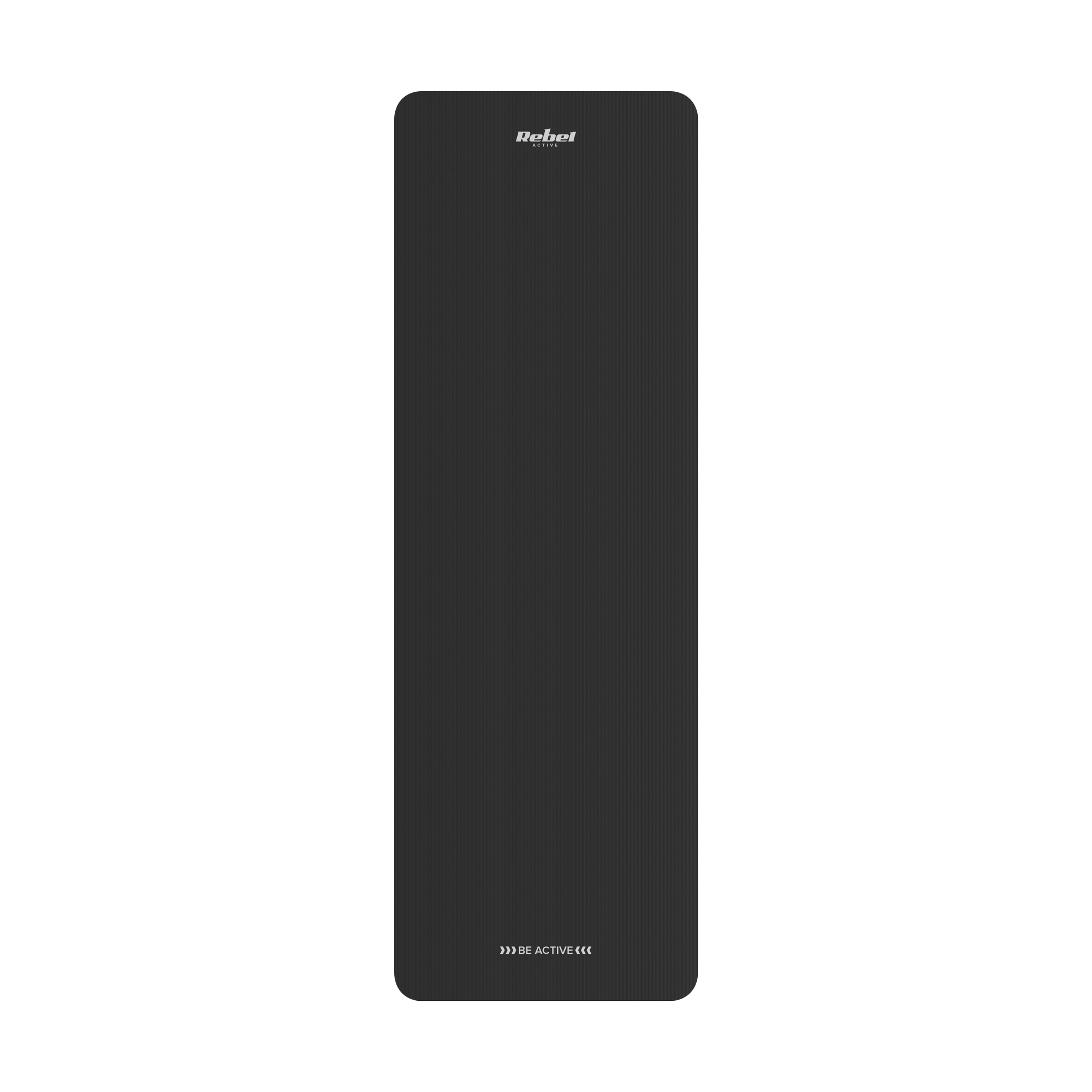 Mata gimnastyczna do ćwiczeń joga, pilates, fitness, 183x61cm, grubość 1.5cm, materiał NBR, czarna, REBEL ACTIVE