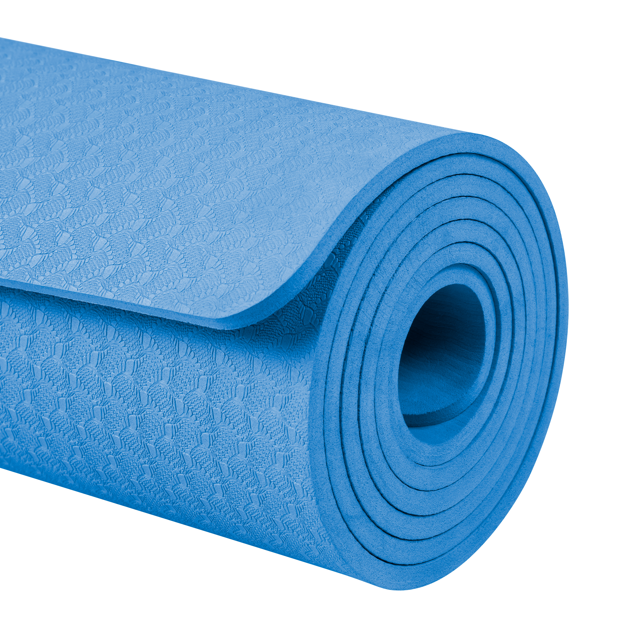 Mata gimnastyczna do ćwiczeń joga, pilates, fitness, 183x61cm, grubość 6mm, materiał TPE, niebieska, REBEL ACTIVE