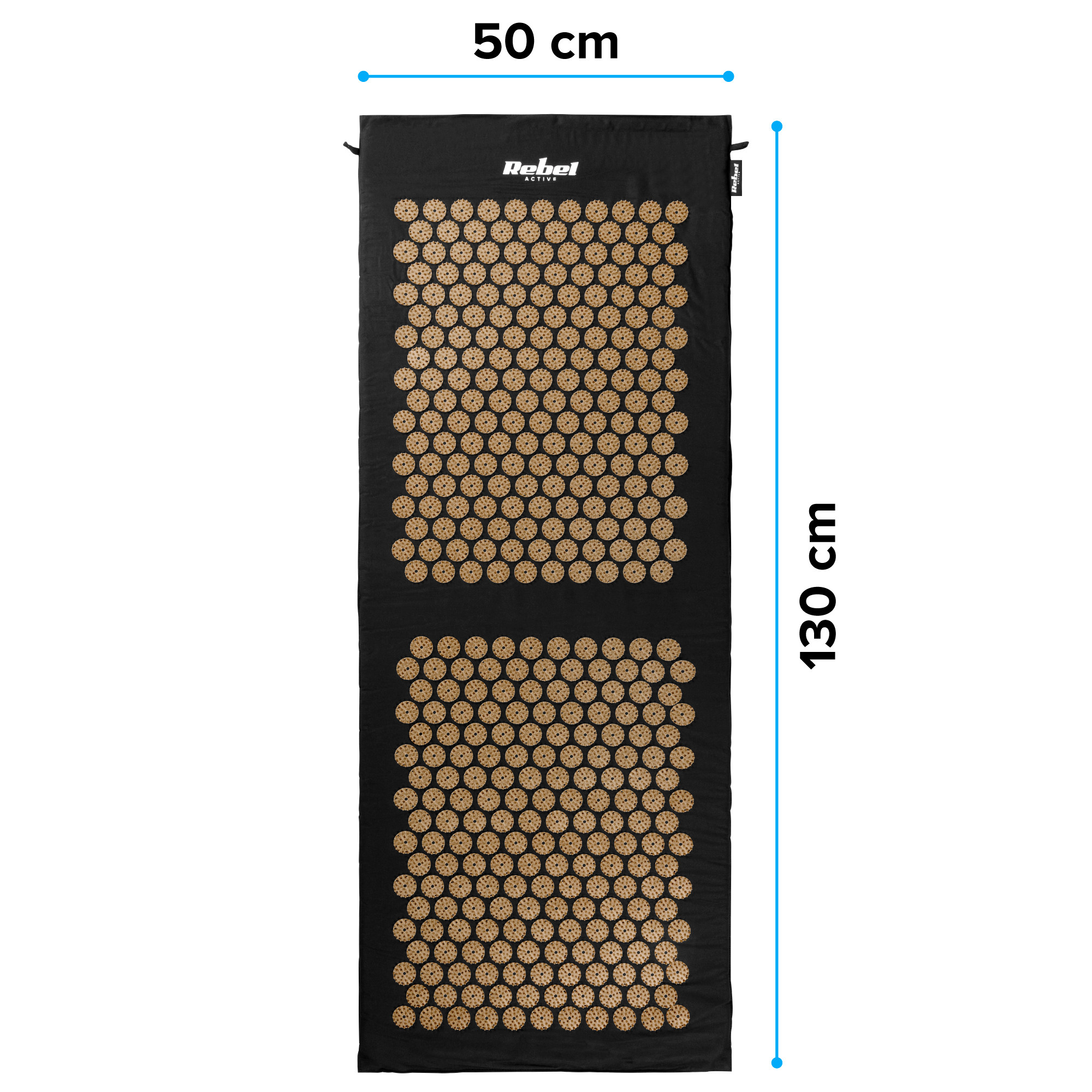 Mata zdrowotna ECO z kolcami do akupresury z poduszką, 130x50cm, XXL, złote kolce, Rebel Active