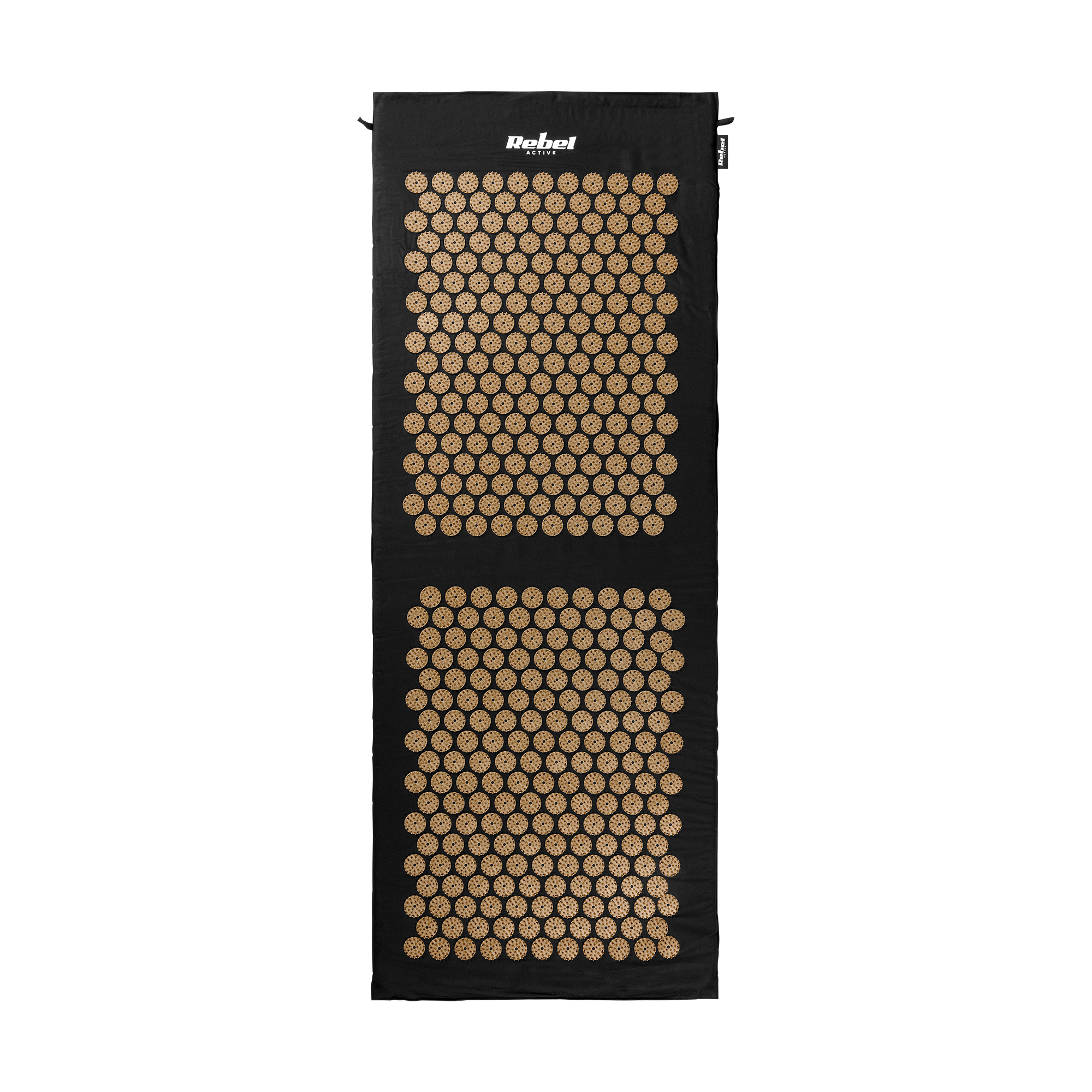 Mata zdrowotna z kolcami do akupresury z poduszką, 130x50cm, XXL, złote kolce, Rebel Active