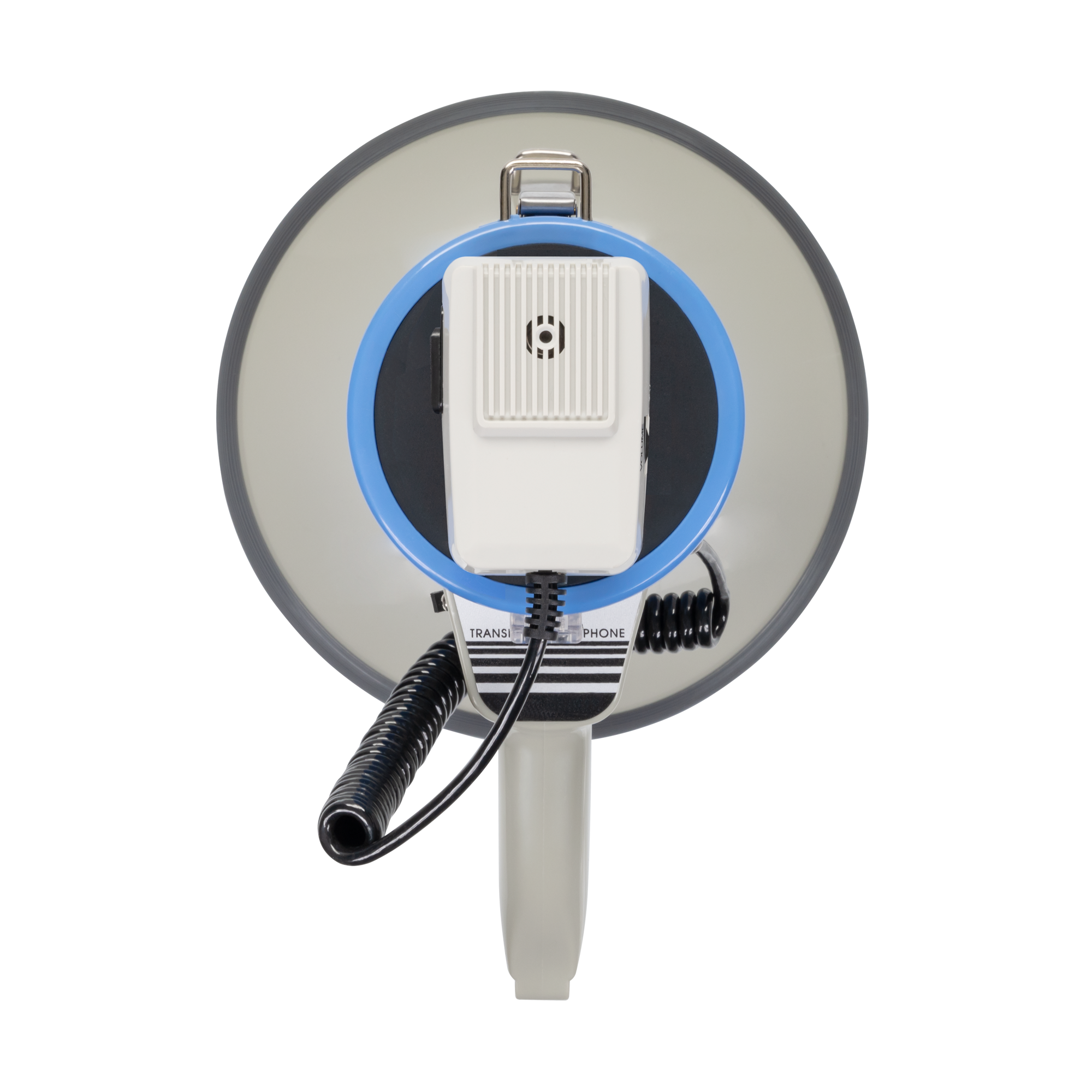 Megafon został wyposażony w uchwyty oraz tasiemkę, która umożliwia wygodne noszenie urządzenia na ramieniu, co jest szczególnie przydatne podczas długotrwałego użytkowania. Dzięki przenośnej konstrukcji, megafon jest łatwy w obsłudze i przenoszeniu, co sprawia go niezawodnym narzędziem w terenie.