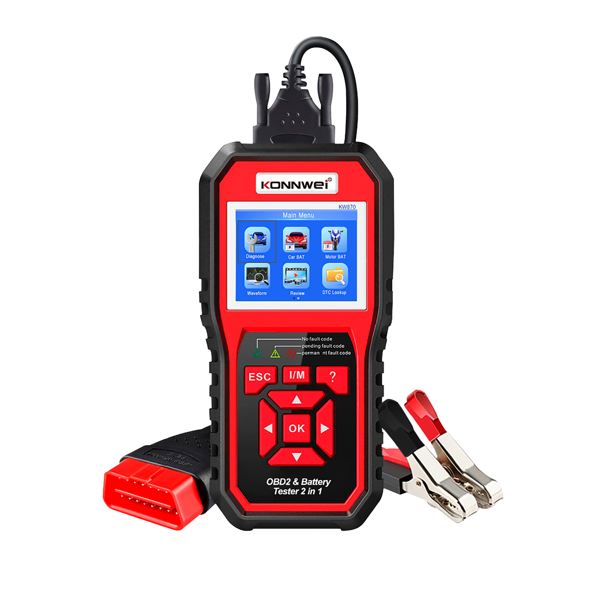Miernik diagnostyczny, skaner OBD2, tester baterii Konnwei KW870