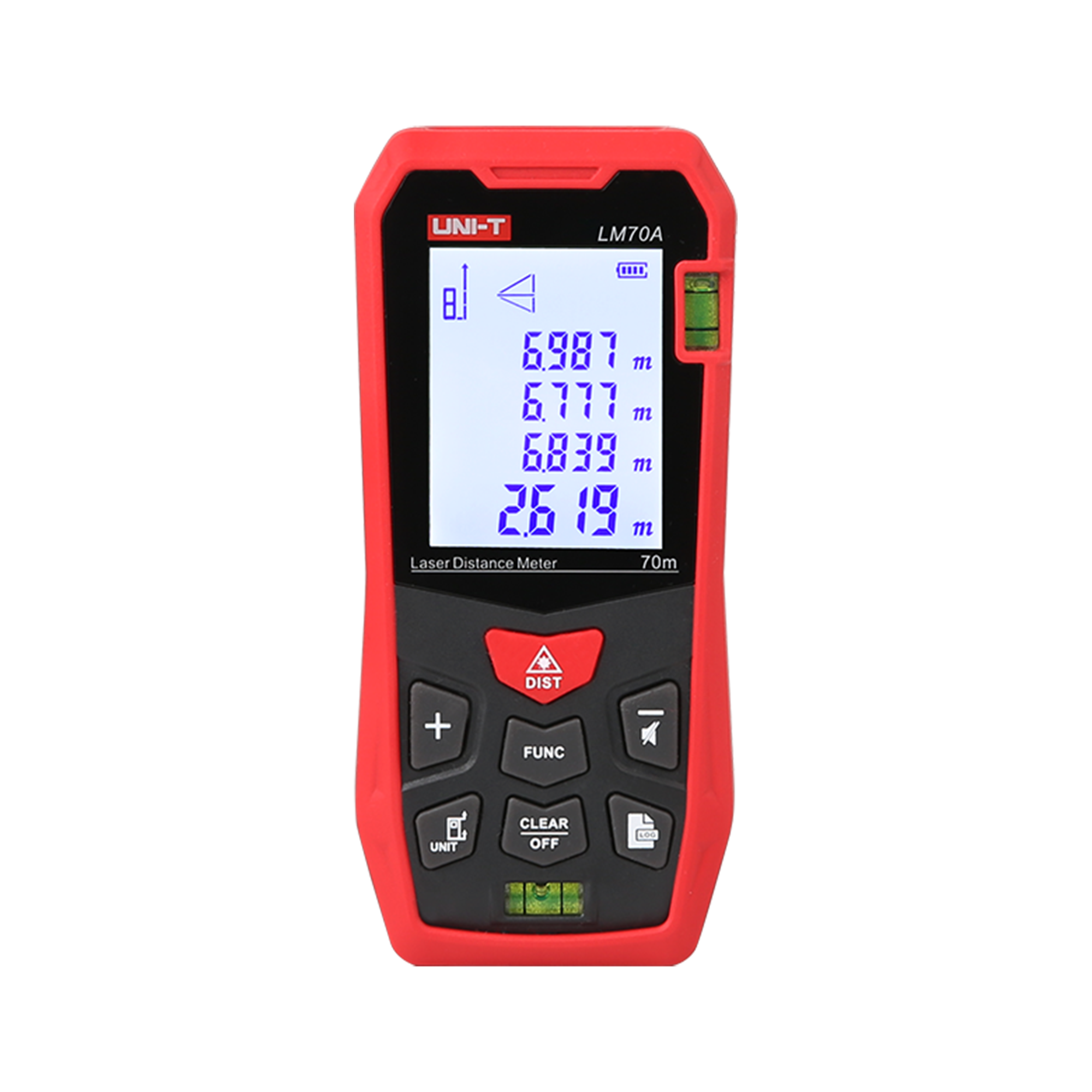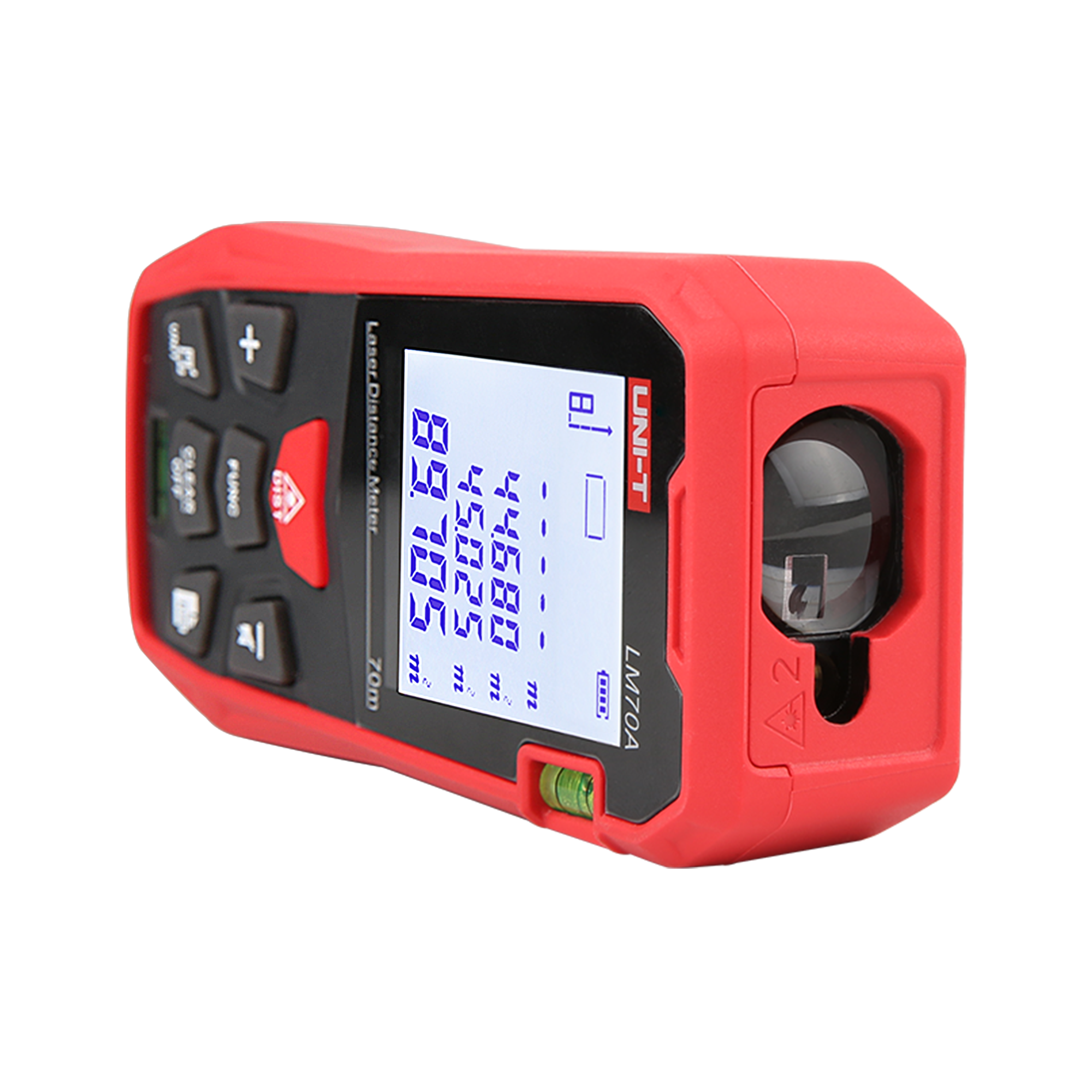 UNI-T LM70A wyposażony jest w szereg funkcji, które ułatwiają codzienną pracę. Oprócz standardowego pomiaru pojedynczego i ciągłego, miernik oferuje możliwość pomiaru powierzchni, objętości oraz pomiary pośrednie i bezpośrednie z wykorzystaniem twierdzenia Pitagorasa. Funkcje dodawania i odejmowania wyników oraz możliwość zapisu do 99 grup pomiarów sprawiają, że urządzenie jest niezwykle funkcjonalne i wygodne w użyciu.