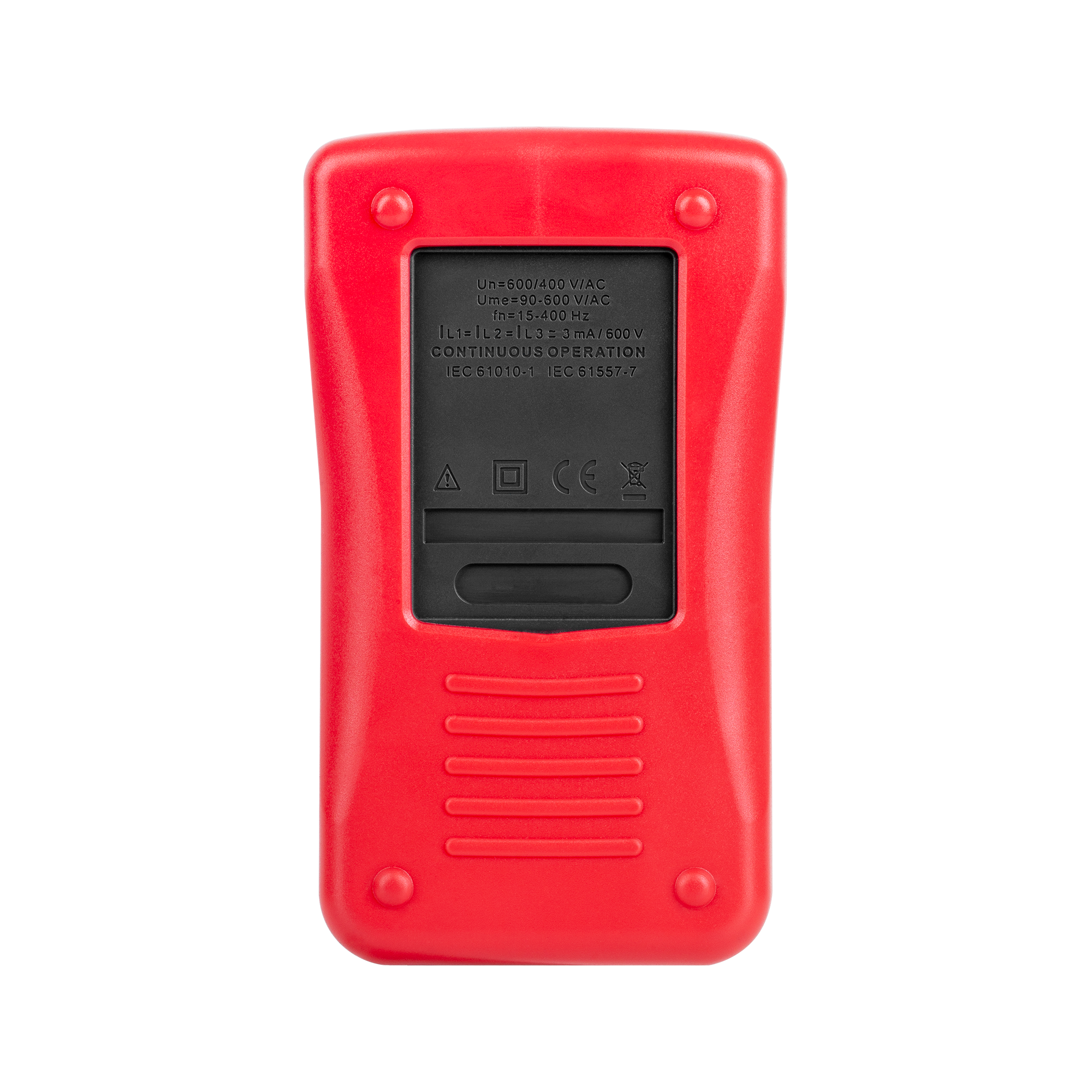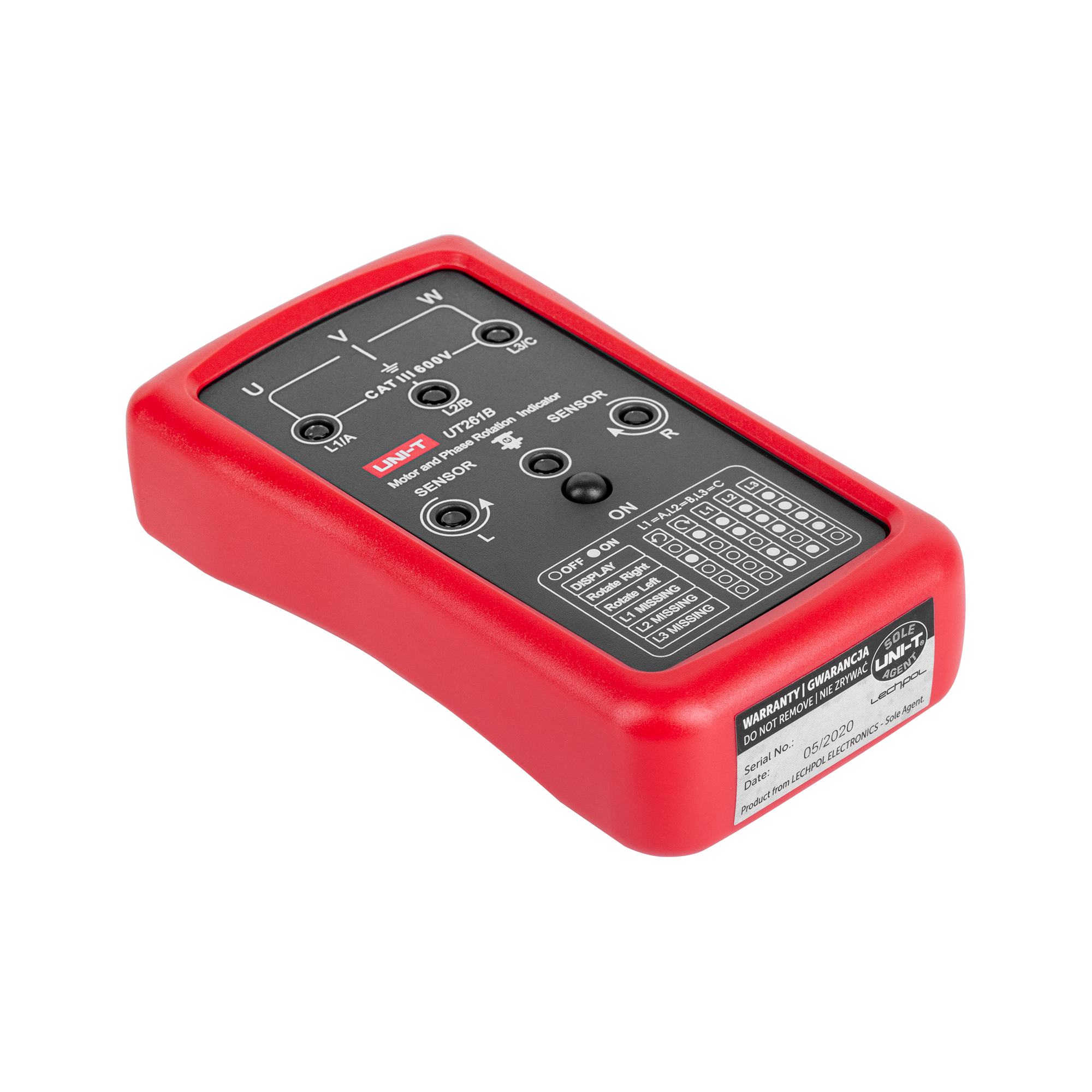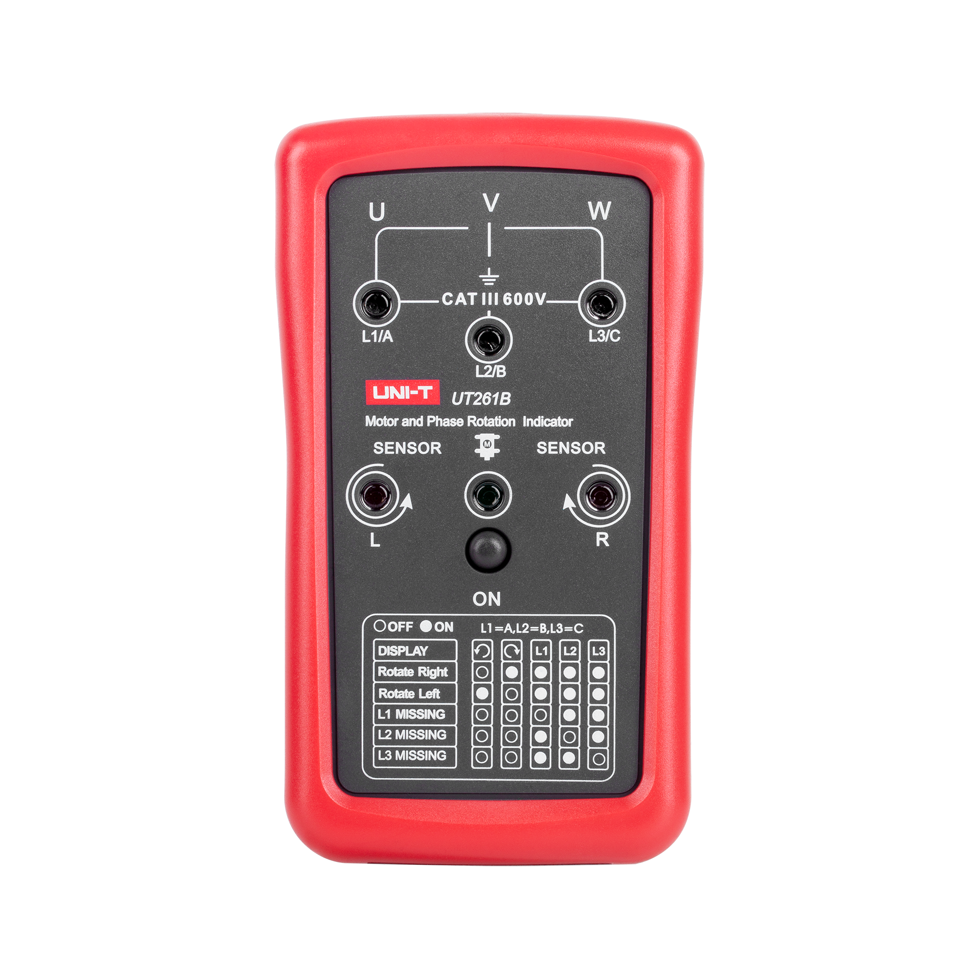 UT261B umożliwia dokładne wykrywanie kolejności faz dzięki sygnalizacji LED, co ułatwia identyfikację poprawnej sekwencji faz w układach trójfazowych. Funkcja wykrywania brakującej fazy również jest wizualizowana za pomocą diod LED, co pozwala na szybkie zlokalizowanie problematycznych obszarów. Dodatkowo, miernik umożliwia wskazanie obrotów silnika, co jest istotne przy uruchamianiu lub diagnostyce maszyn.