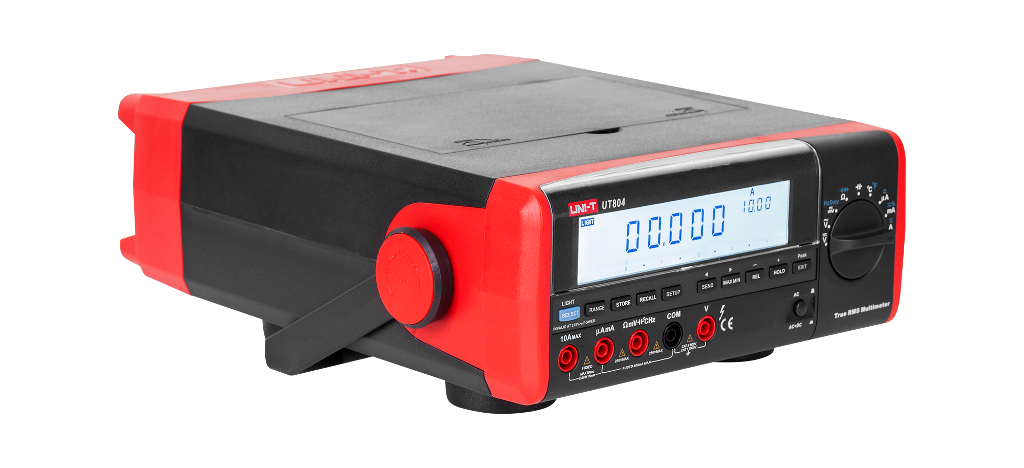 UT804 oferuje precyzyjne pomiary napięcia stałego (do 1000 V) z dokładnością ±(0,025%+5) oraz napięcia zmiennego AC z dokładnością ±(0,4%+30). Miernik umożliwia także pomiary prądu stałego DC (do 10 A) z dokładnością ±(0,1%+15) oraz prądu zmiennego AC z dokładnością ±(0,7%+15). Wysoka dokładność pomiarów oraz szerokie zakresy czynią ten miernik wszechstronnym narzędziem do pracy z różnorodnymi obwodami i układami.