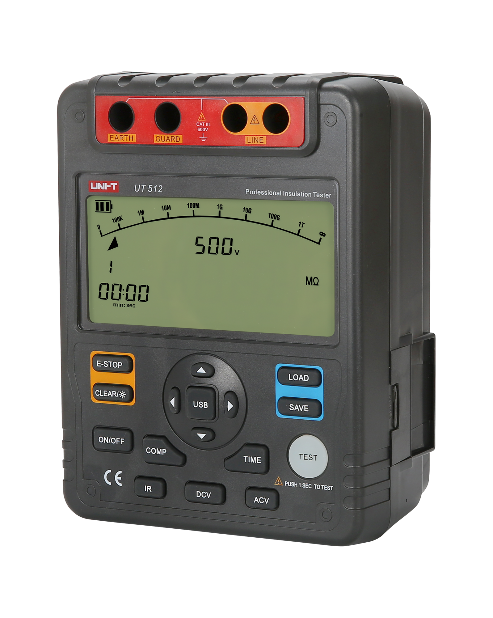 UT512 oferuje dodatkowe funkcje pomiaru napięcia stałego (DC) i zmiennego (AC) w zakresie od 30 V do 600 V, z dokładnością ±(2%+5), co czyni go wszechstronnym narzędziem do diagnostyki elektrycznej. Urządzenie posiada także funkcje absorpcji dielektrycznej oraz indeksu polaryzacji, które umożliwiają głębszą analizę właściwości izolacji, co jest kluczowe w zapobieganiu awariom i zapewnieniu bezpieczeństwa instalacji.
