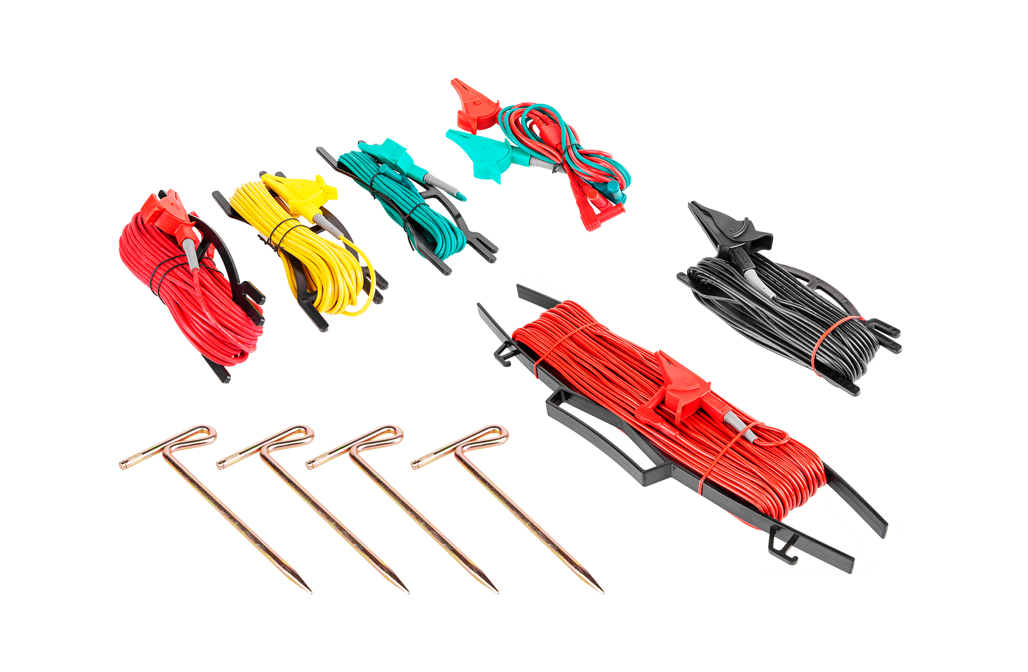 Akcesoria: baterie, 7x przewód pomiarowy z krokodylkiem, 2x elektroda pomiarowa, etui