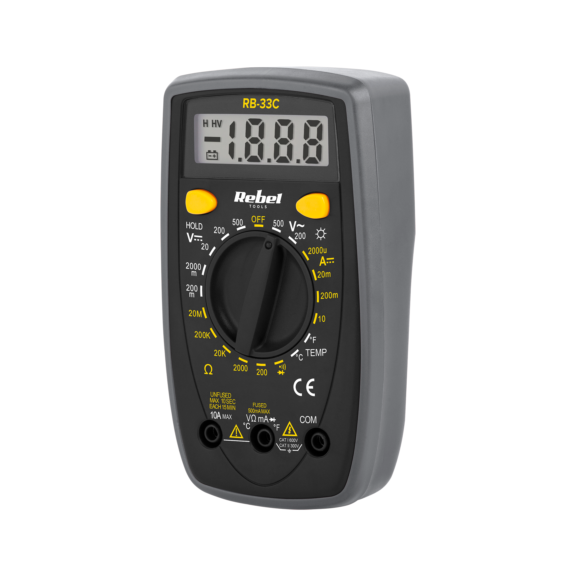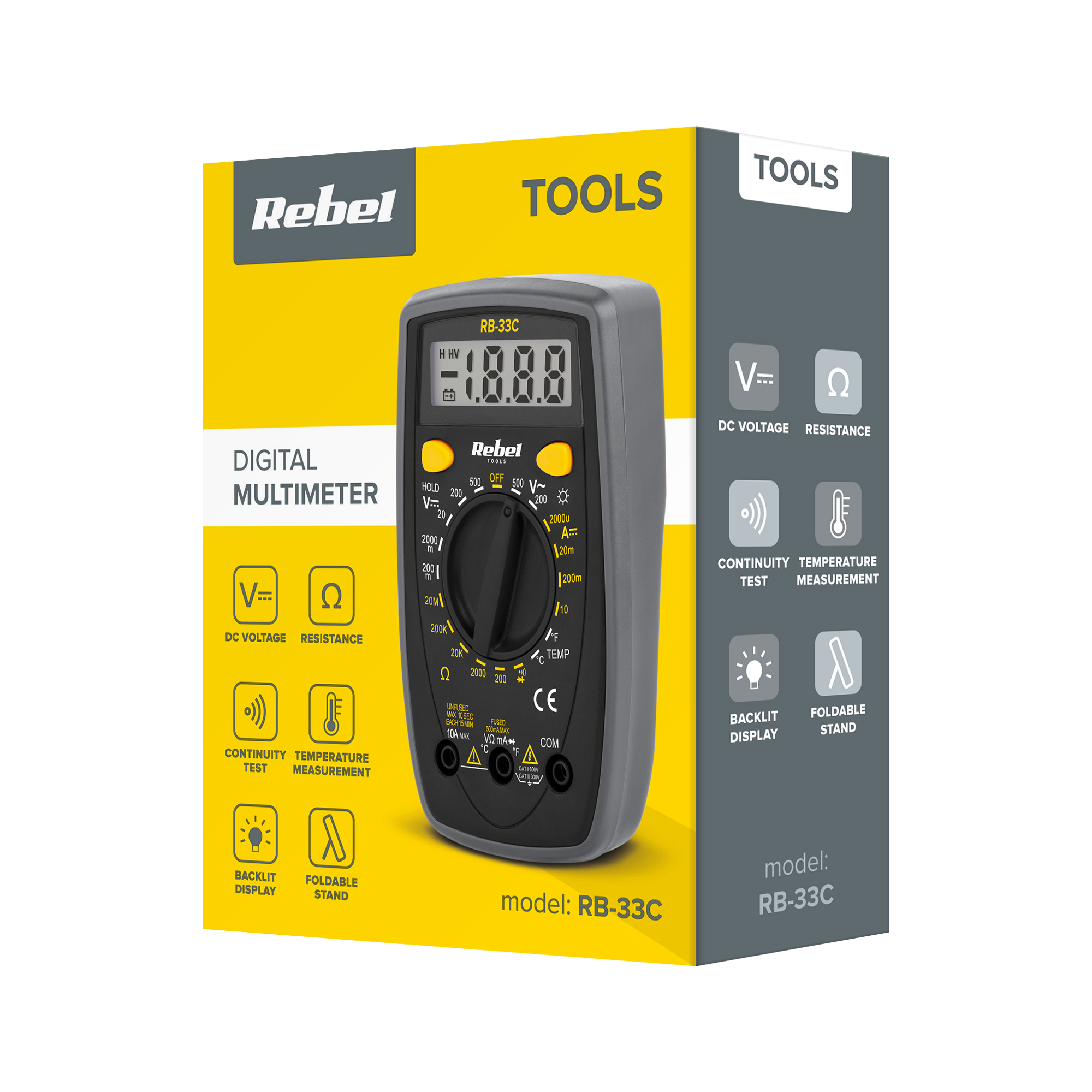 Miernik uniwersalny REBEL RB-33C to precyzyjne narzędzie pomiarowe idealne do zastosowań domowych i profesjonalnych. Wyposażony w szerokie zakresy pomiarowe oraz praktyczne funkcje, RB-33C jest nieocenionym wsparciem w diagnostyce i konserwacji instalacji elektrycznych oraz urządzeń elektronicznych.