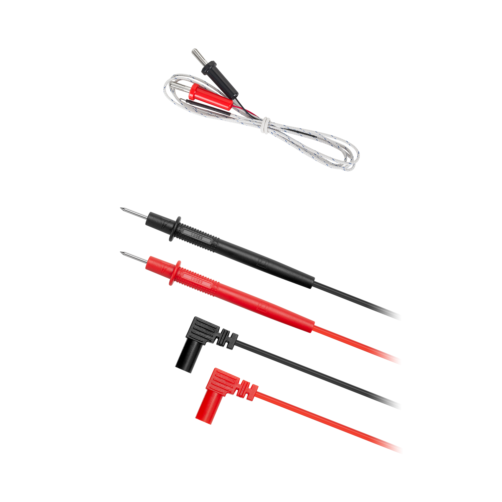 W zestawie: miernik, przewody pomiarowe, termopara typu K, instrukcja