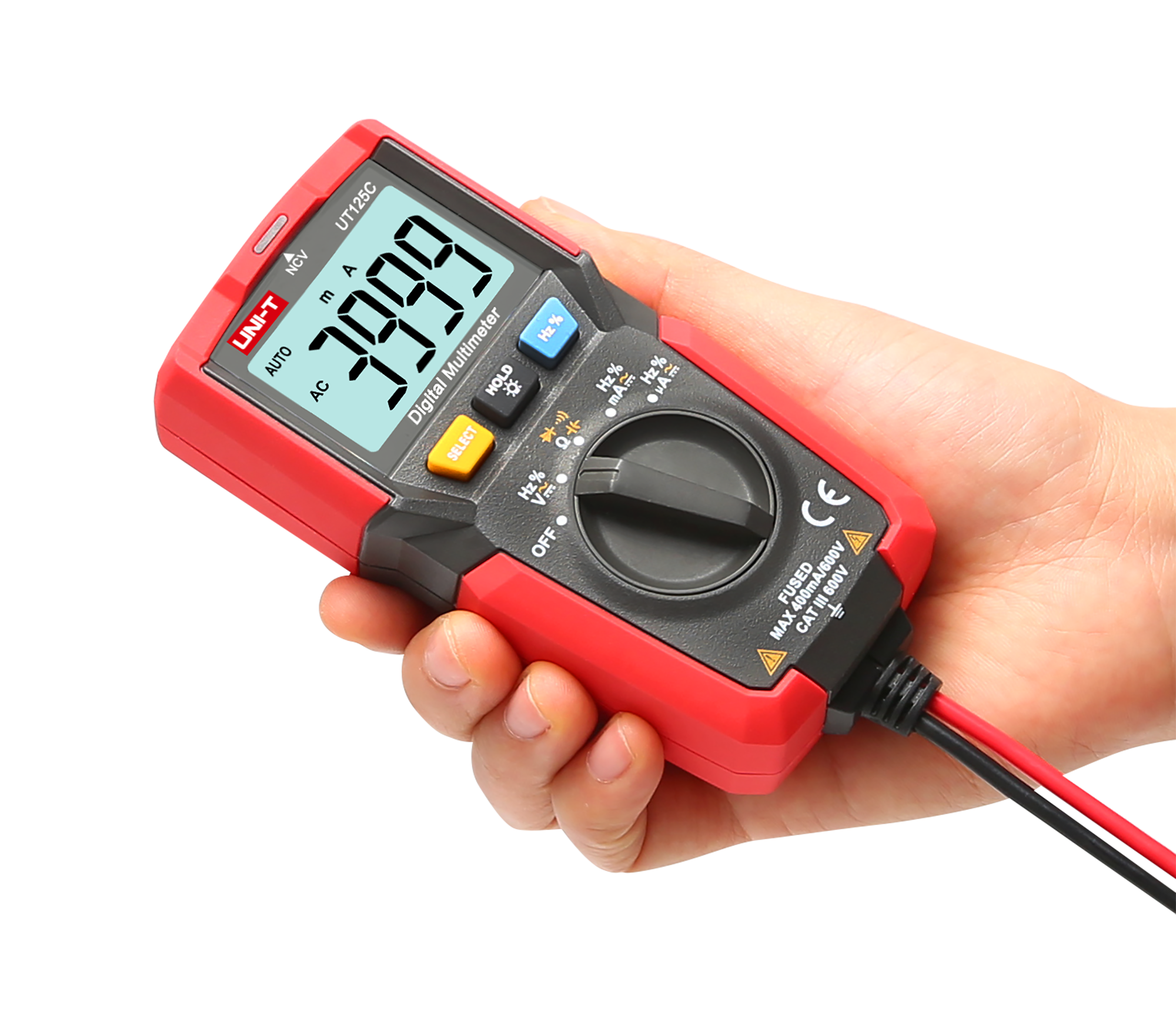 UT125C został wyposażony w funkcję automatycznej zmiany zakresów pomiarowych, co ułatwia i przyspiesza pracę. Funkcja wykrywania pola elektrycznego umożliwia bezkontaktowe zlokalizowanie przewodów pod napięciem, co zwiększa bezpieczeństwo użytkowania. Miernik oferuje również funkcję zamrożenia ostatniego wskazania, podświetlenie wyświetlacza LCD oraz wskaźnik niskiego poziomu baterii, co podnosi komfort pracy. Automatyczne wyłączanie urządzenia oszczędza energię, a maksymalny odczyt wynoszący 4000 zapewnia precyzyjne pomiary.