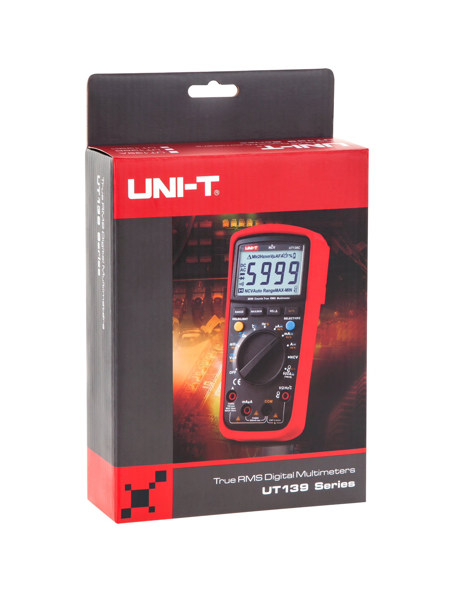 UT139B charakteryzuje się solidną i ergonomiczną konstrukcją, co sprawia, że jest trwały i wygodny w użytkowaniu. Podświetlany ekran LCD o rozmiarze 58 x 36 mm zapewnia wyraźny odczyt wyników, nawet w słabych warunkach oświetleniowych. Miernik zasilany jest dwoma bateriami 1,5 V (R06), a automatyczne wyłączenie po 15 minutach nieaktywności oszczędza energię. W zestawie z miernikiem znajdują się baterie oraz przewody pomiarowe, co pozwala na natychmiastowe rozpoczęcie pracy. UT139B to niezawodny i funkcjonalny miernik uniwersalny, który sprawdzi się w każdej sytuacji wymagającej precyzyjnych pomiarów.