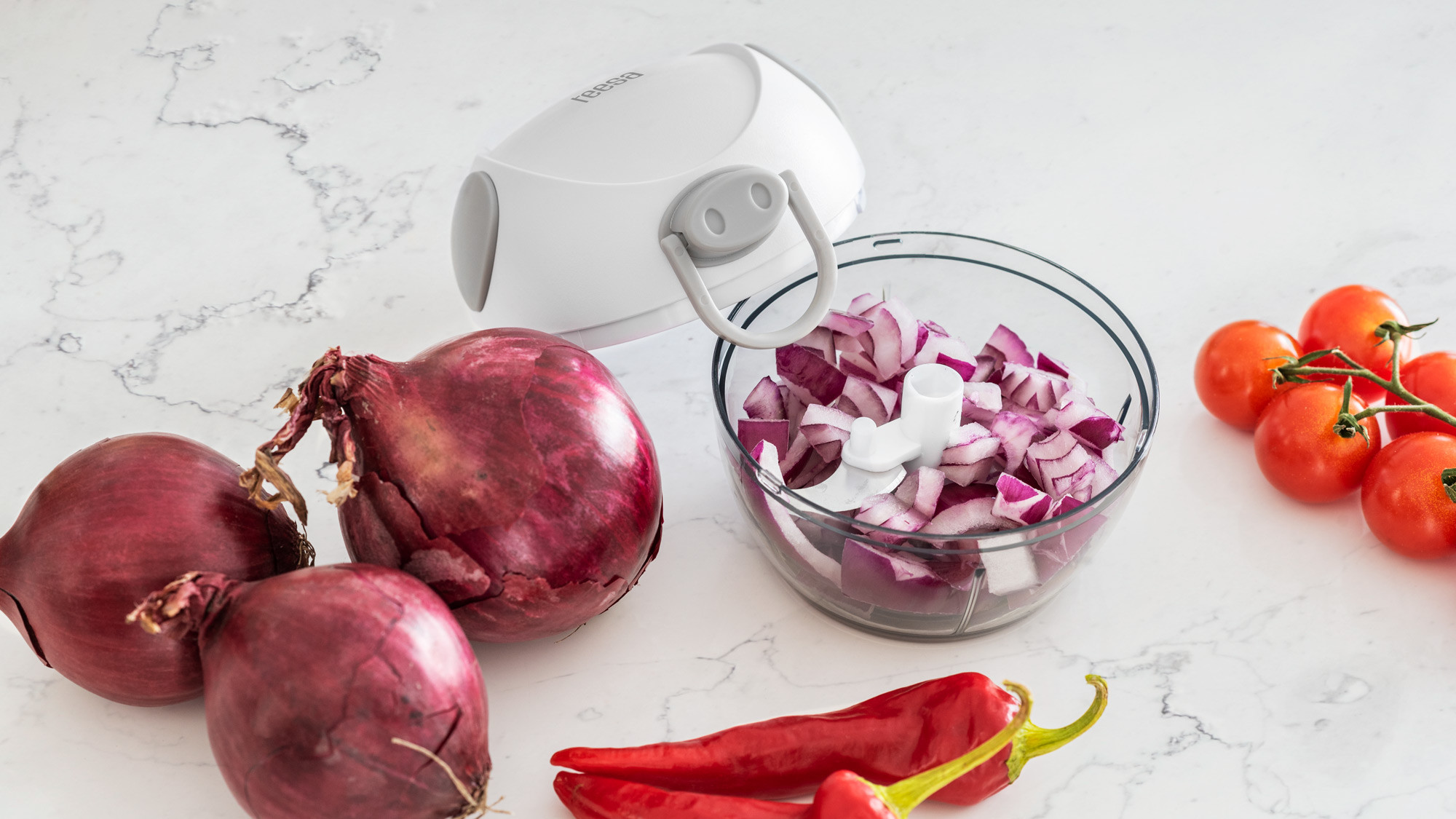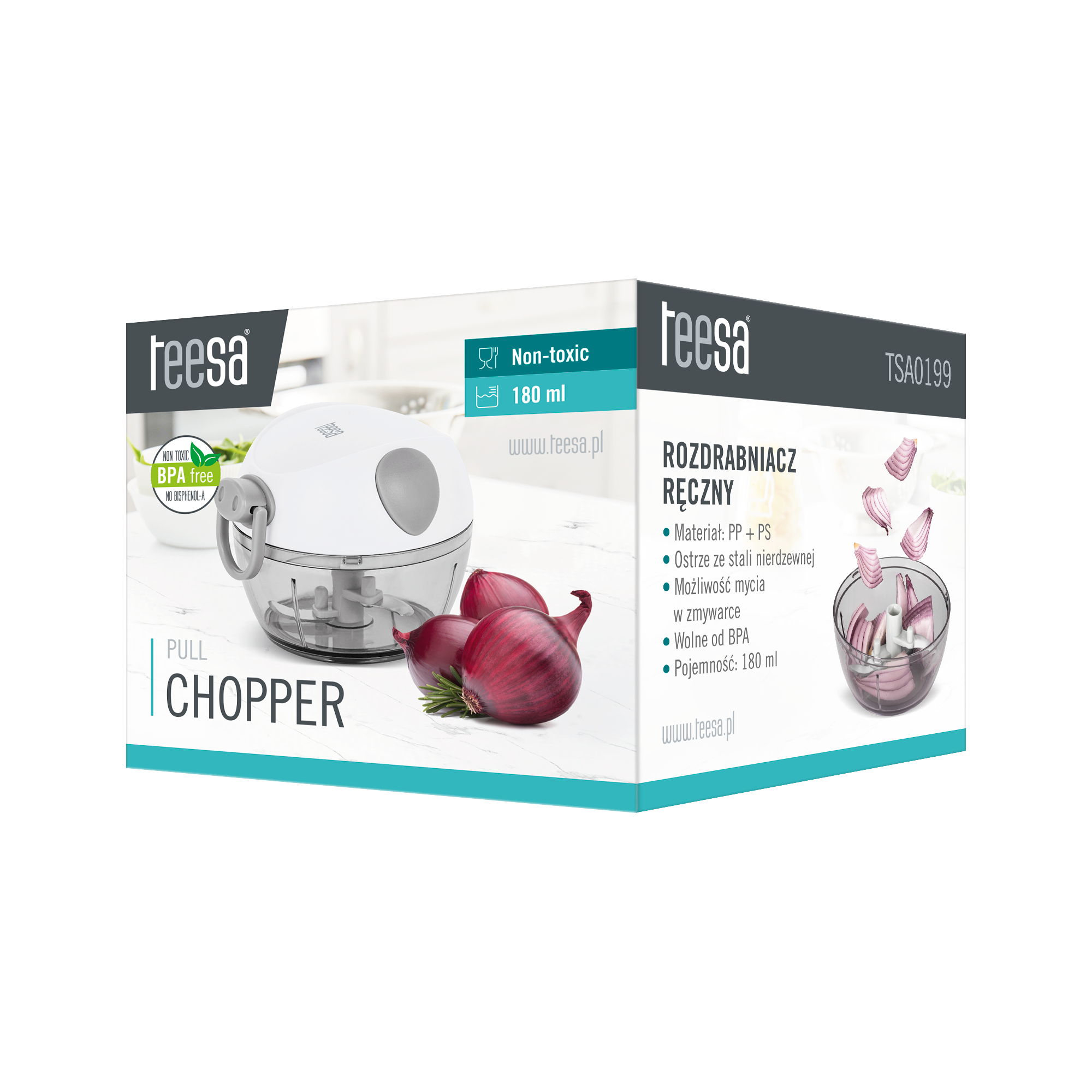 Potrzebujesz małego urządzenia, które pomoże Ci szybko przygotować ulubioną sałatkę albo pastę jajeczną? A może wybierasz się na biwak i potrzebny Ci siekacz do cebuli? Wybierz ręczny mini rozdrabniacz do warzyw Teesa o pojemności 180 ml, który wykorzystując trzy, rozmieszczone na różnych poziomach ostrza z łatwością rozdrobni cebulę, marchew, orzechy czy zioła.