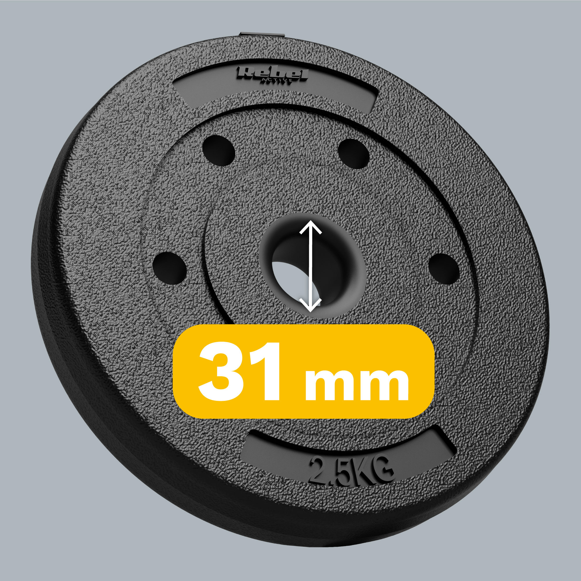 Zestaw Rebel Active pozwala trenować wznosy i przysiady przy pomocy samych ciężarków. Możesz też założyć obciążenia na gryf. Standardowa średnica otworu każdego z obciążeń wynosząca 31 mm sprawia, że będą one kompatybilne z większością popularnych sztang.