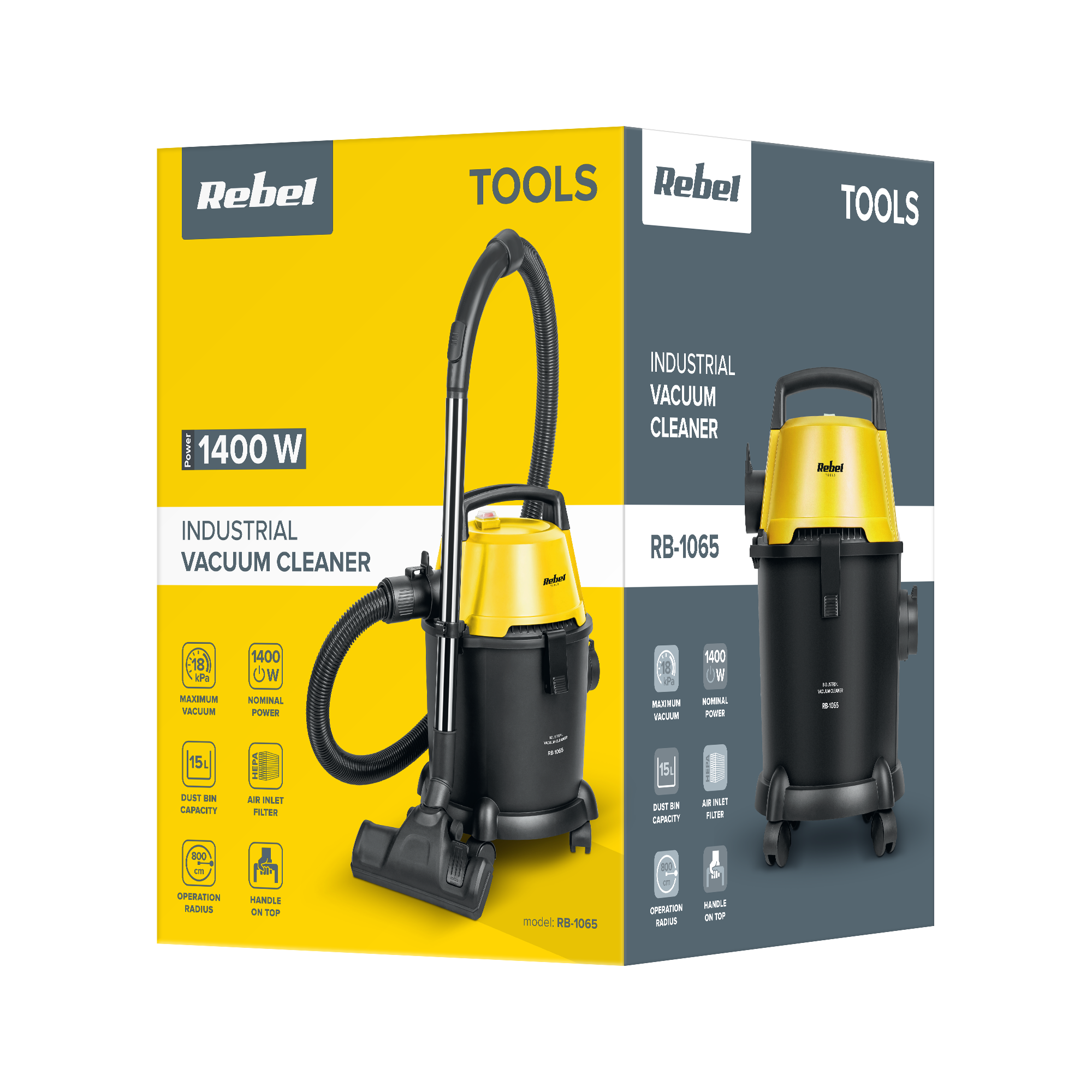 Przemysłowy odkurzacz Rebel posiada duży, 15-litrowy pojemnik na zanieczyszczenia, co pozwala na długą pracę, bez konieczności opróżniania. To na co, warto zwrócić uwagę to uniwersalny filtr HEPA, który nadaje się zarówno do zanieczyszczeń suchych jak też mokrych.