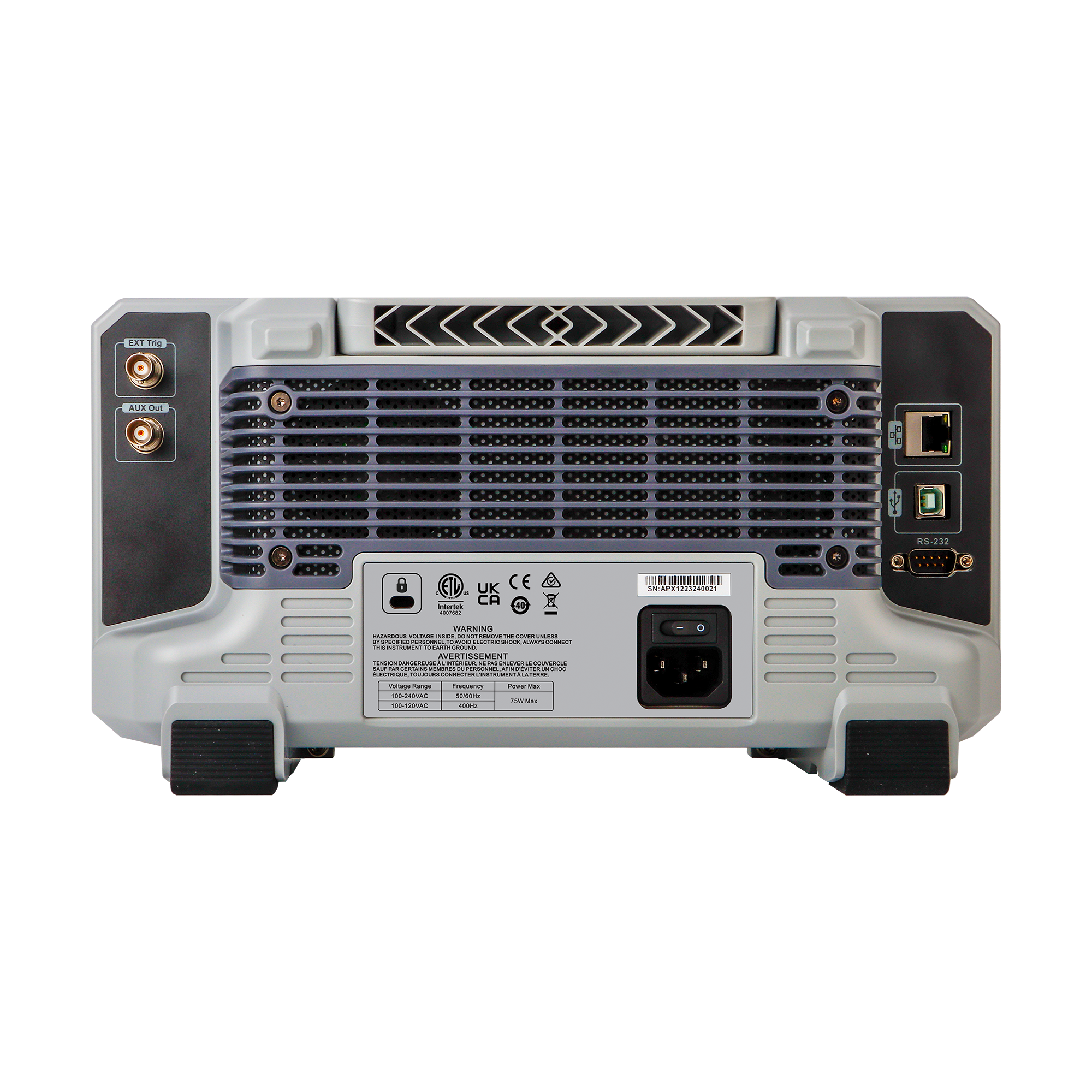 Interfejsy: USB-Host, USB-Device, LAN, EXT Trig, AUX (Trig Out, Pass/Fail, DVM)