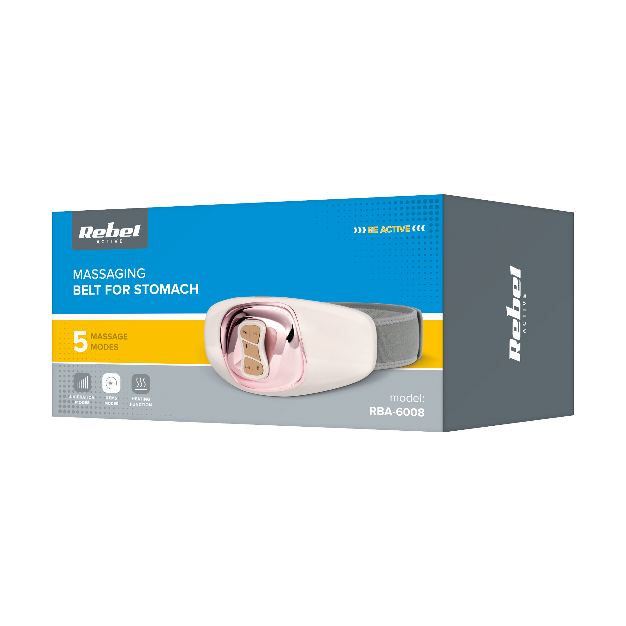 RBA-6008 to nowoczesne urządzenie do masażu i stymulacji mięśni, które pomoże Ci w relaksacji, regeneracji i ujędrnianiu brzucha. Wyposażony w funkcję grzania, bezprzewodowy pas z pilotem łączy najnowsze technologie wibracyjne i EMS. To Twój osobisty masażysta, gotowy, by działać zawsze i wszędzie!