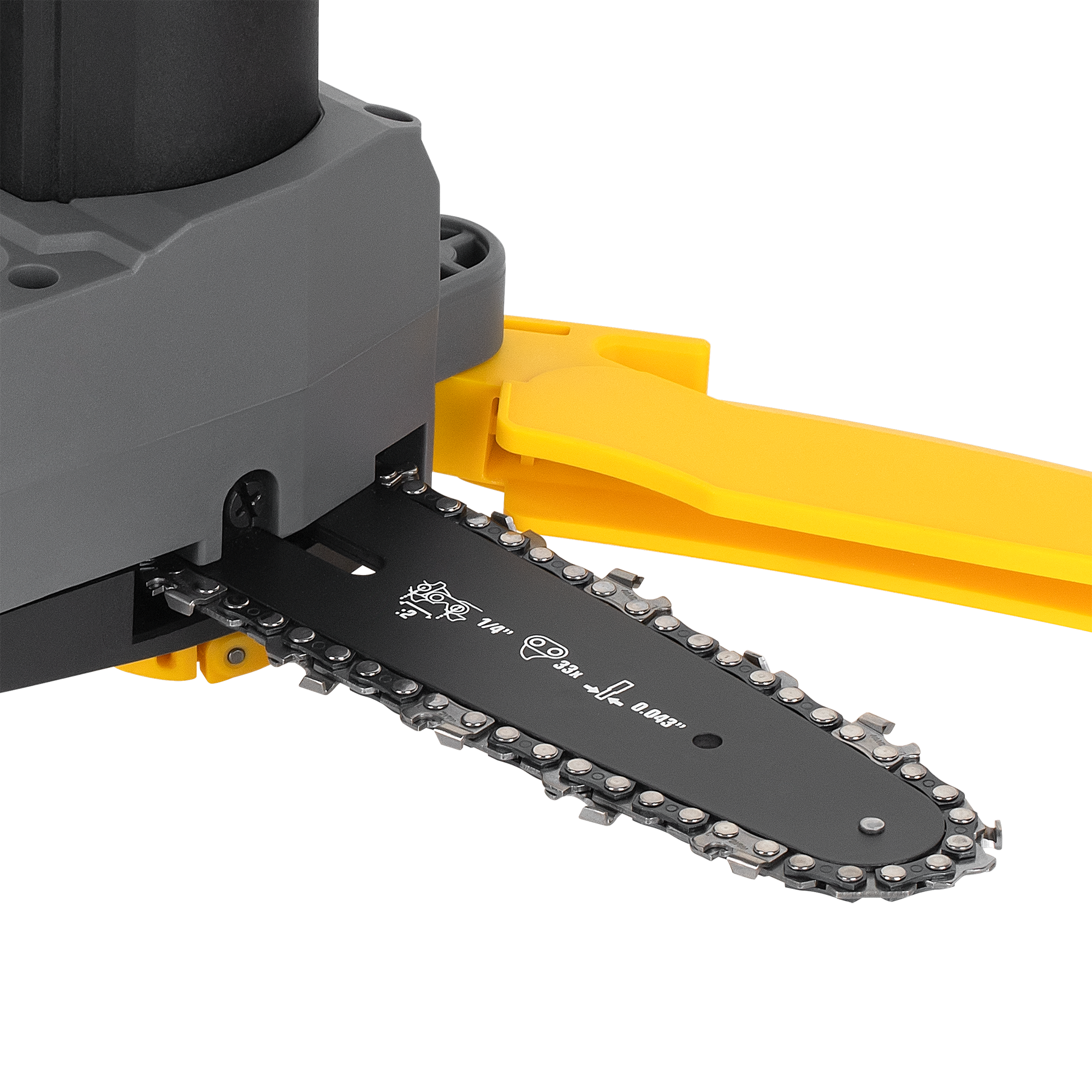 Pracujący z prędkością 4,9 m/s łańcuch użyty w pilarce Rebel ma podziałkę 6,35 mm oraz grubość ogniw wynoszącą 1,1 mm, co zapewnia płynną i skuteczną pracę. Z kolei prowadnica o długości 152 mm w połączeniu ze średnicą cięcia wynoszącą 125 mm ułatwia skuteczne cięcie gałęzi o różnej grubości, nawet w trudno dostępnych miejscach.