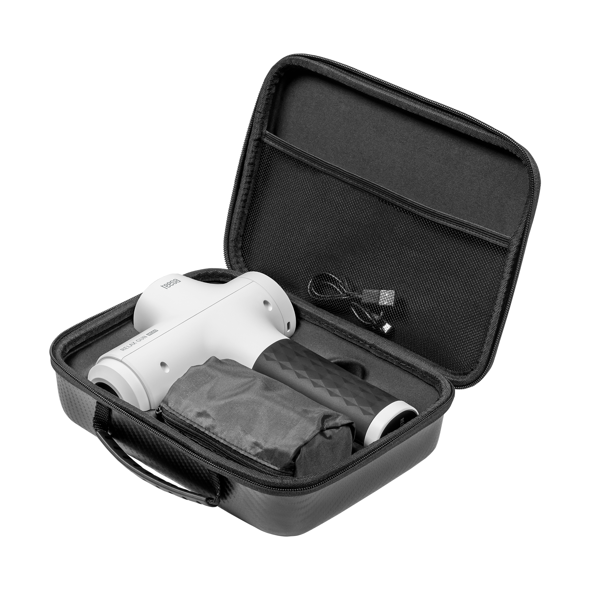 W zestawie z masażerem Teesa otrzymasz solidne etui, które pozwala na wygodne przechowywanie i transport urządzenia. Dzięki temu możesz mieć pistolet masujący zawsze przy sobie – w domu, w pracy, czy na siłowni.