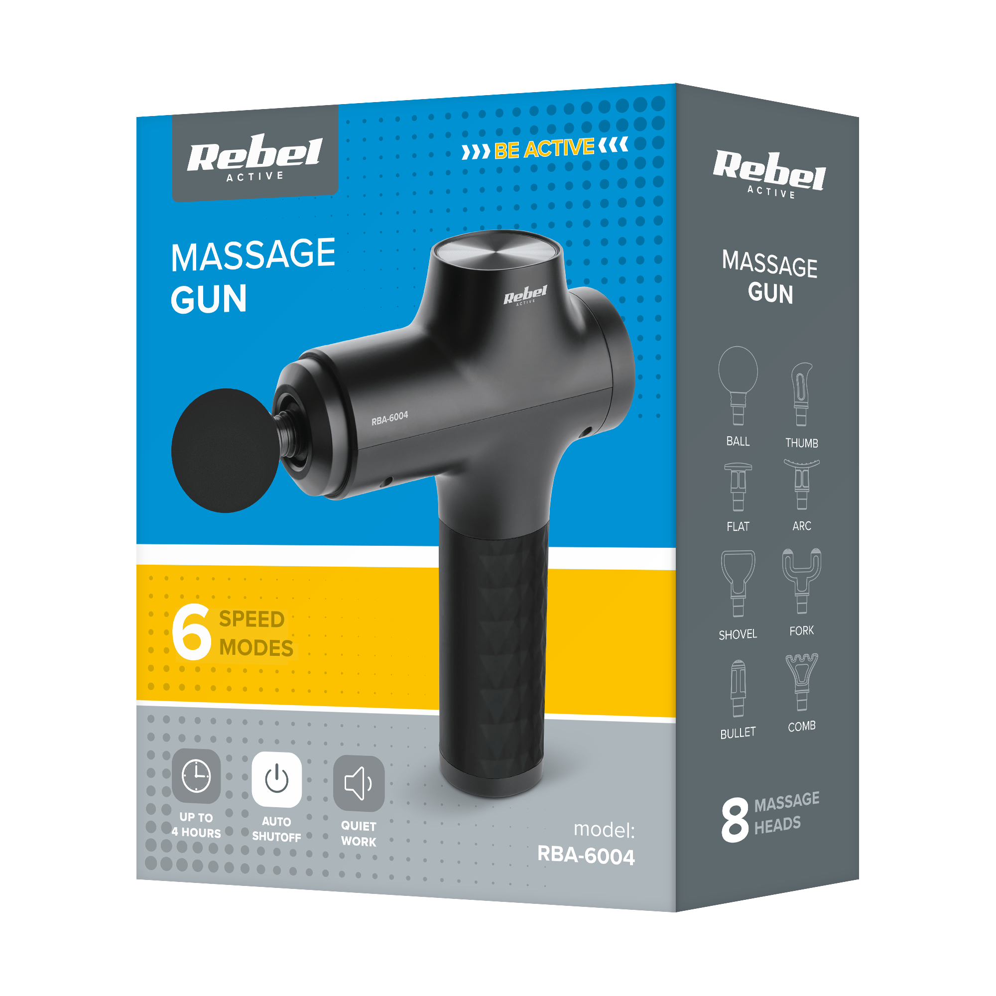 Pistolet do masażu, 8 nakladek, REBEL ACTIVE