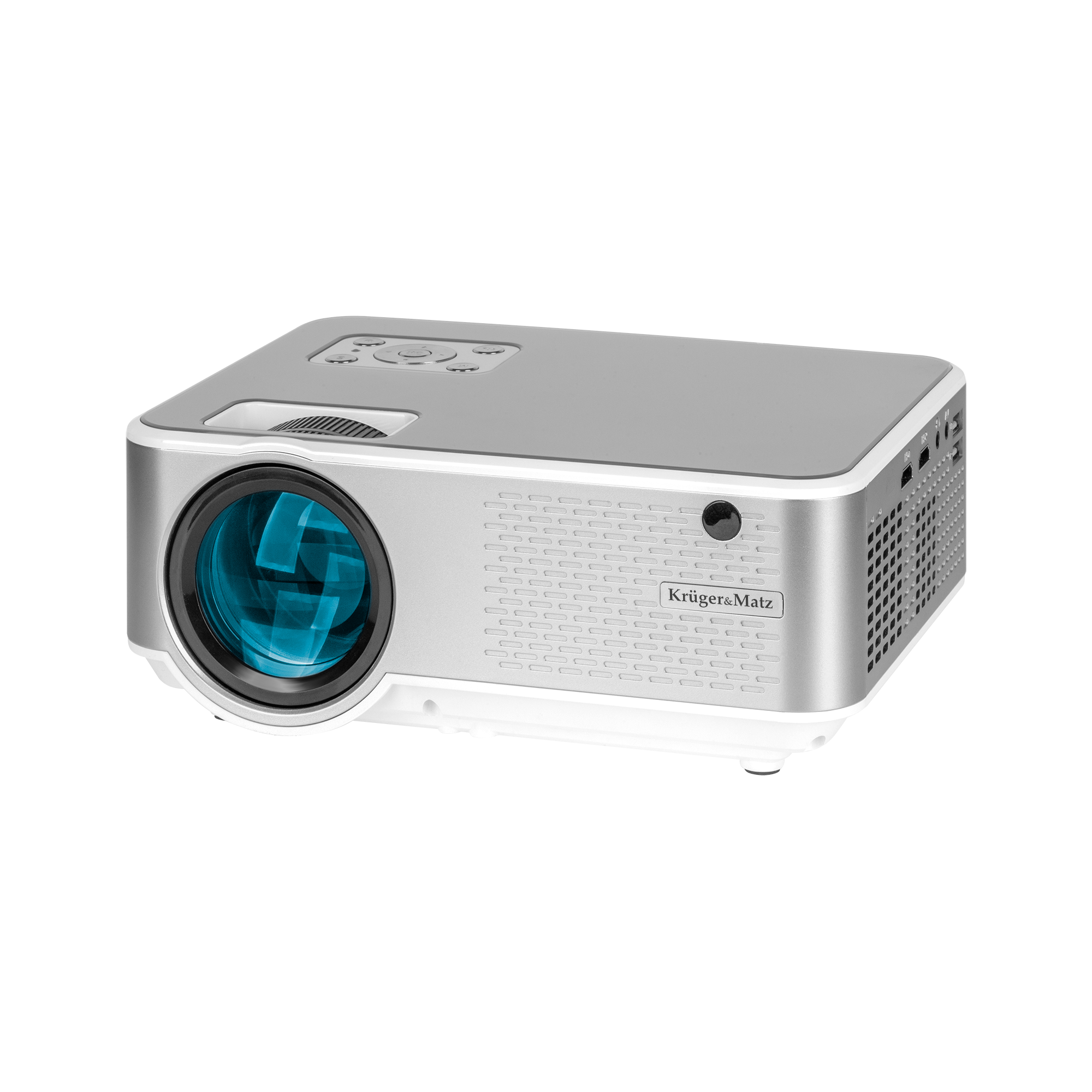 Projektor multimedialny Kruger&Matz został wyposażony w dwa pokrętła, którymi wygodnie dostosujesz ustawienia obrazu do własnych wymagań. Pierwszym ręcznie ustawisz ostrość, natomiast drugie pozwoli na korekcję zniekształceń trapezowych.