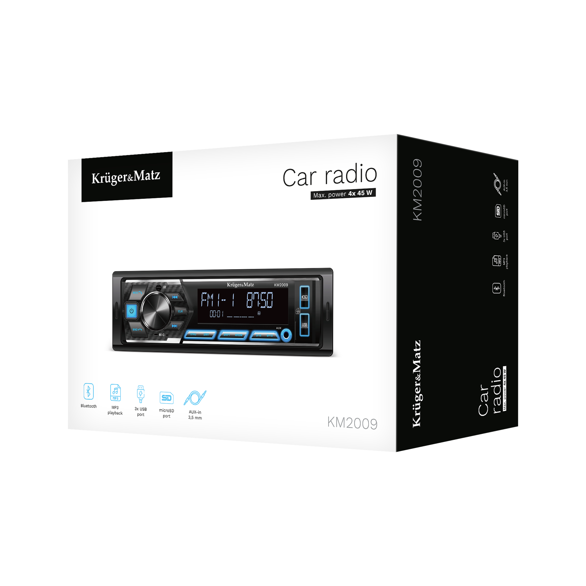 Potrzebujesz wymienić radio w swoim samochodzie? Wybierz radio samochodowe Kruger&Matz KM 2009! To łatwe w obsłudze urządzenie idealnie wkomponuje się we wnętrze Twojego samochodu i sprawi, że każda wyprawa będzie niezapomnianą rozrywką.