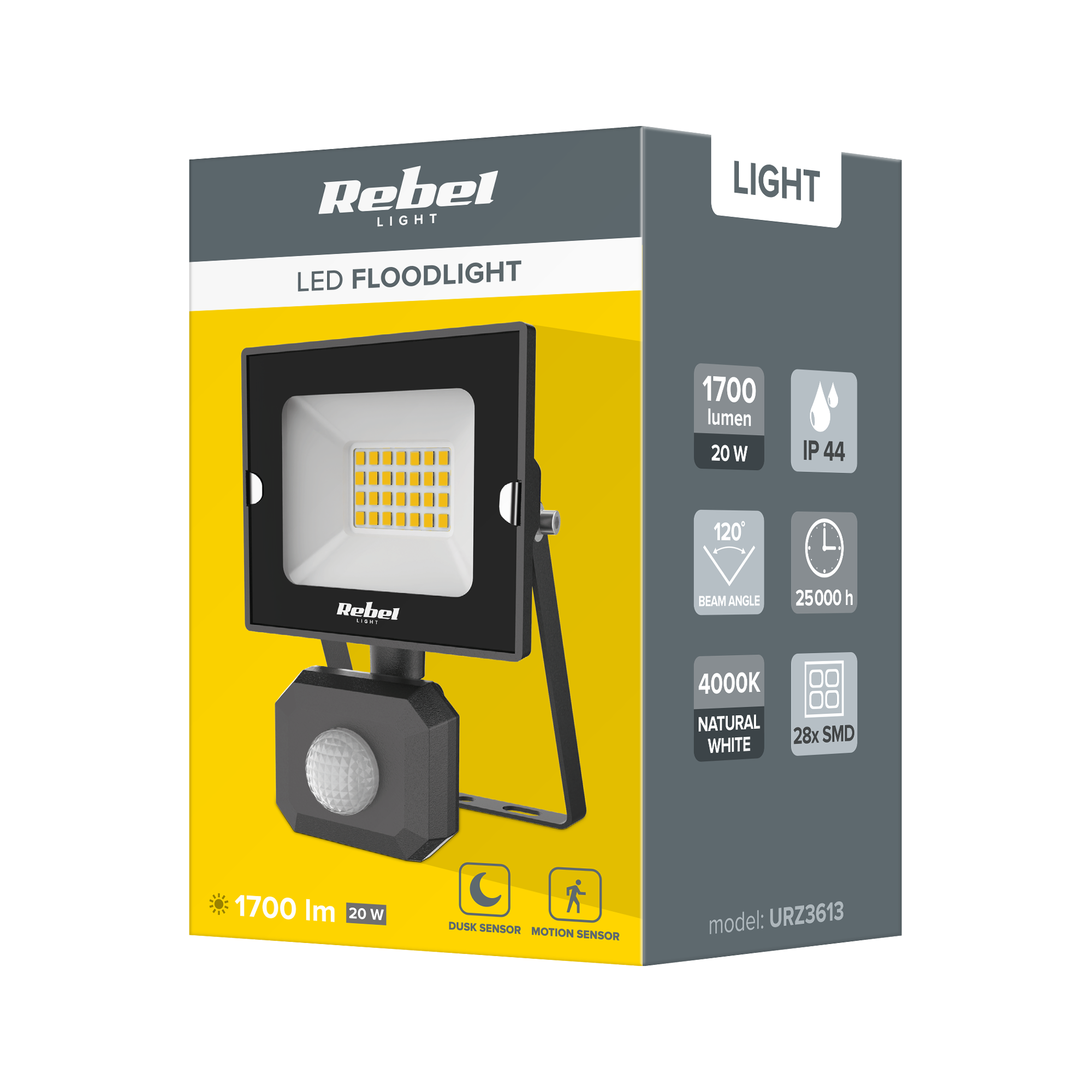 Reflektor LED 20W z sensorem ruchu i zmierzchu, 4000K, 230V