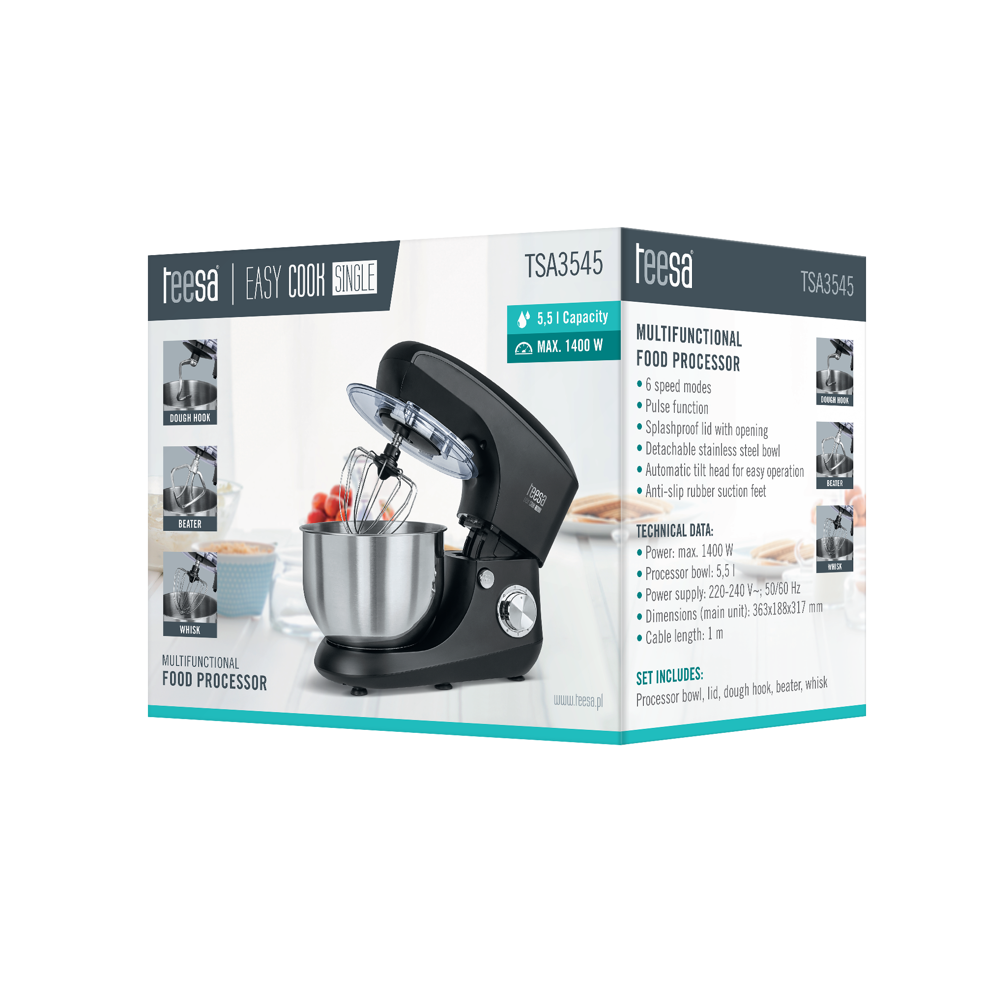 Lubisz zaskakiwać gości pysznymi ciastami i innymi przekąskami? Odkryj w swojej kuchni zupełnie nową jakość! Robot kuchenny Teesa Easy Cook SINGLE pomoże Ci w Twoich przygotowaniach i sprawi, że wyrabianie większej ilości ciasta czy kremów zajmie Ci tylko chwilę.