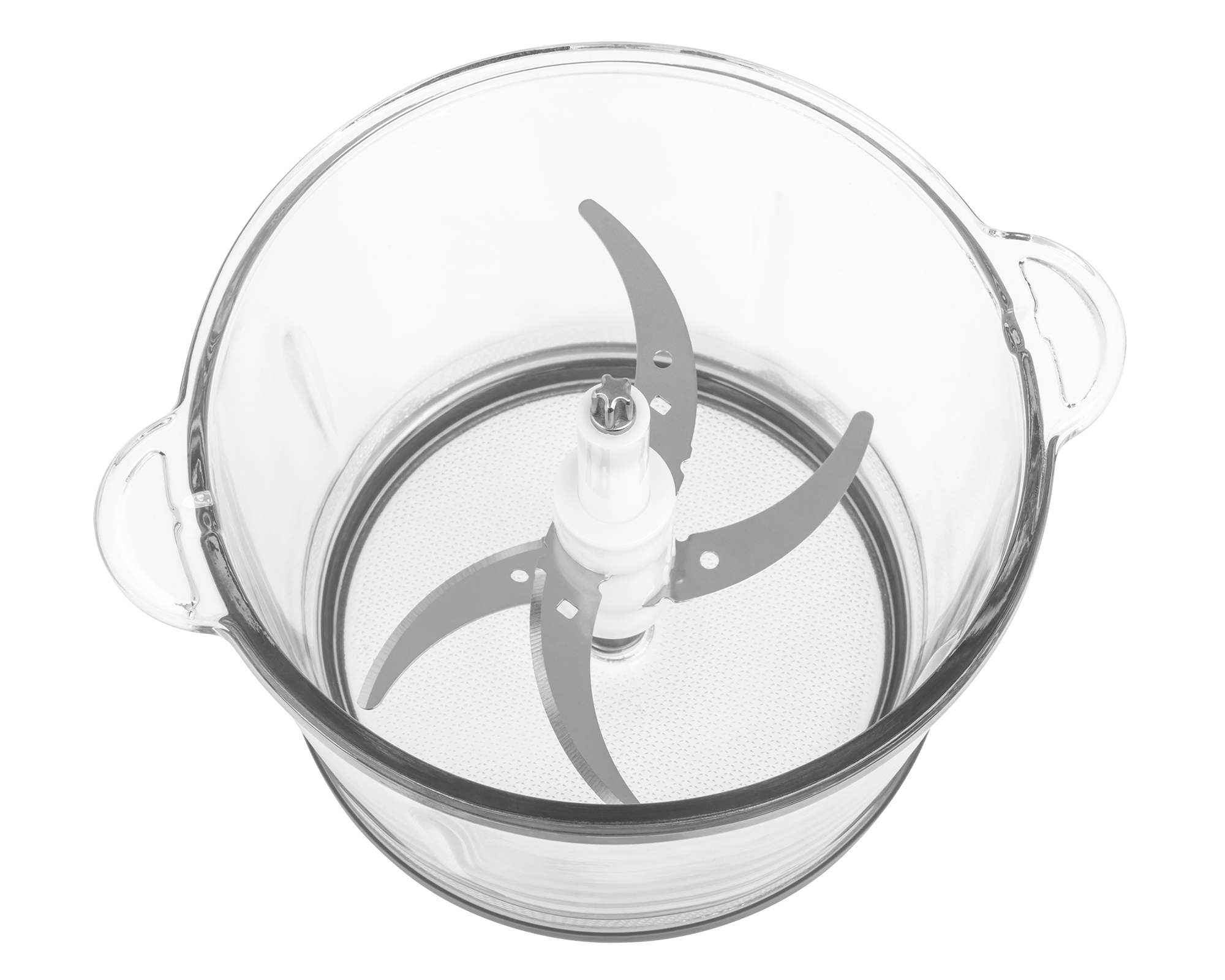 Komfort Twojej pracy podniesie też dołączona do zestawu szklana misa o pojemności 1,5 l, w której rozdrobnisz jednorazowo dużą ilość składników, a także szpatułka ułatwiająca wygarnięcie posiekanych produktów.