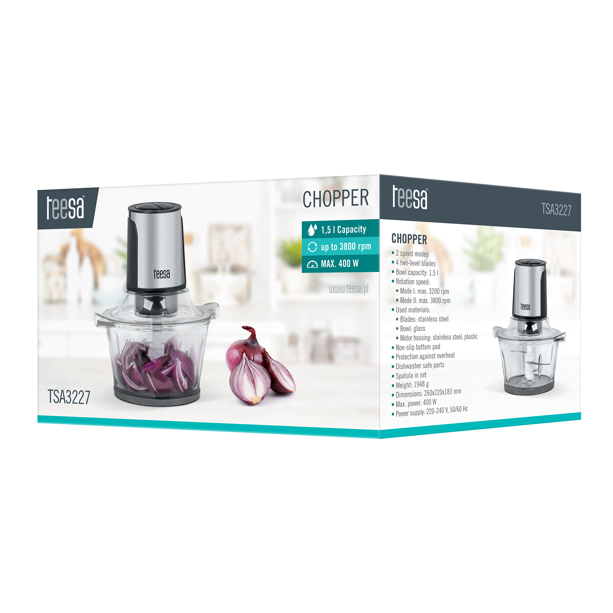 Rozdrabniacz Teesa TSA3227 – Szybkie i precyzyjne siekanie dzięki mocy 400 W i 2 trybom prędkości!