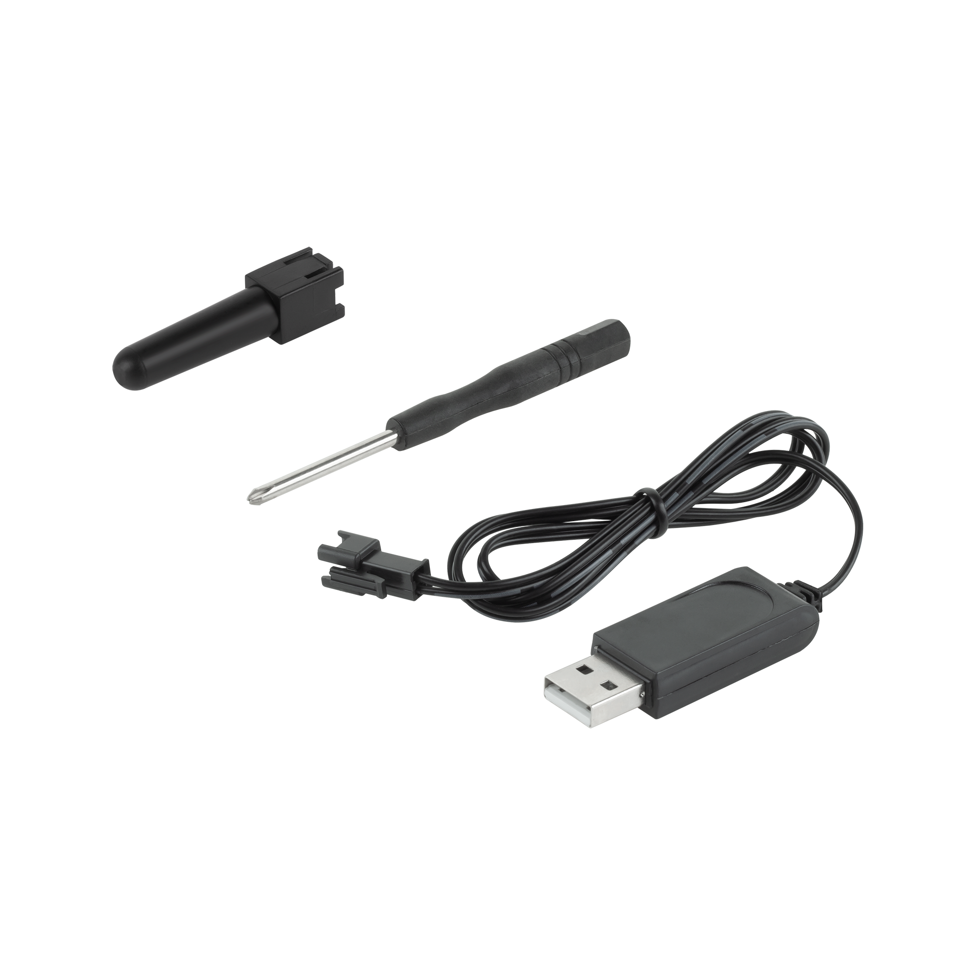 W zestawie: pilot, uchwyt smartfona, kamera WiFi, akumulator, kabel ładujący USB, śrubokręt, instrukcja obsługi