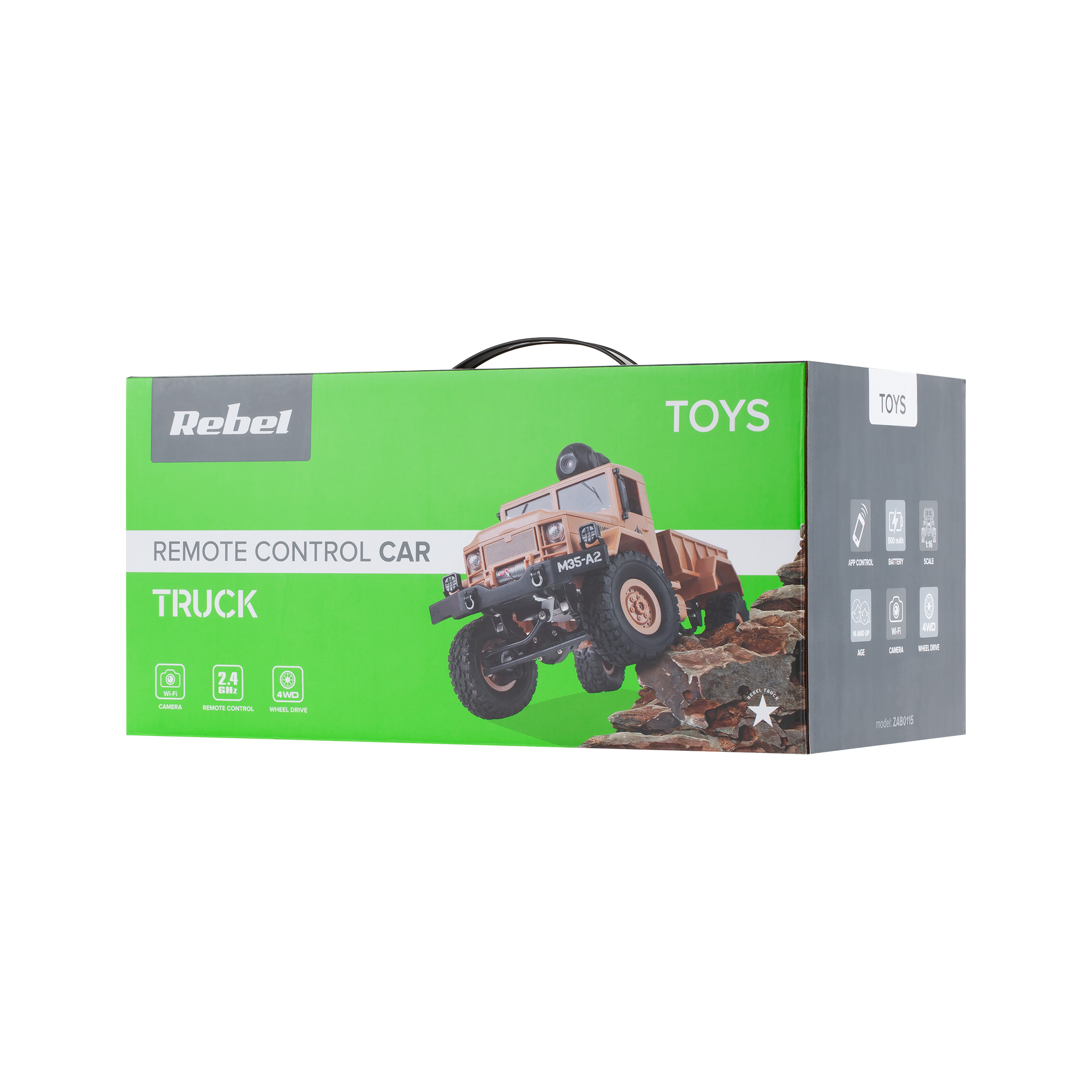 Jeśli od samochodu sterowanego oczekujesz czegoś więcej – skorzystaj z zaawansowanych możliwości Rebel Truck. W zestawie znajdziesz kamerę WiFi 480p, która zamocowana w uchwycie znajdującym się z tyłu kabiny pojazdu pozwoli Ci śledzić przebieg trasy w czasie rzeczywistym i sterować samochodem z poziomu smartfona. Możesz też narysować trasę na wyświetlaczu, a pojazd ją odtworzy w terenie. Wszystko to jest możliwe, dzięki dostępnej w sklepie Play aplikacji Rebel Truck.