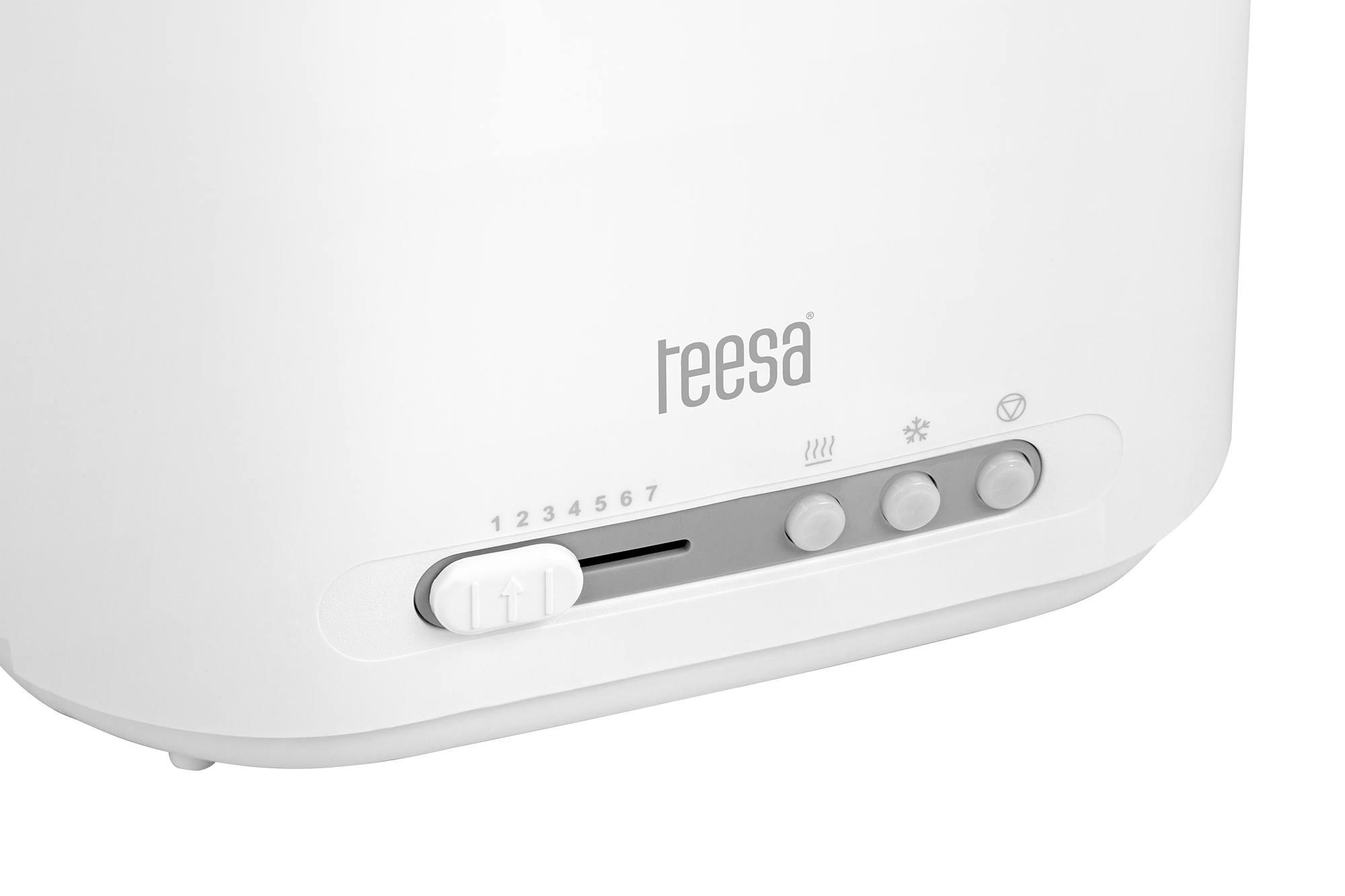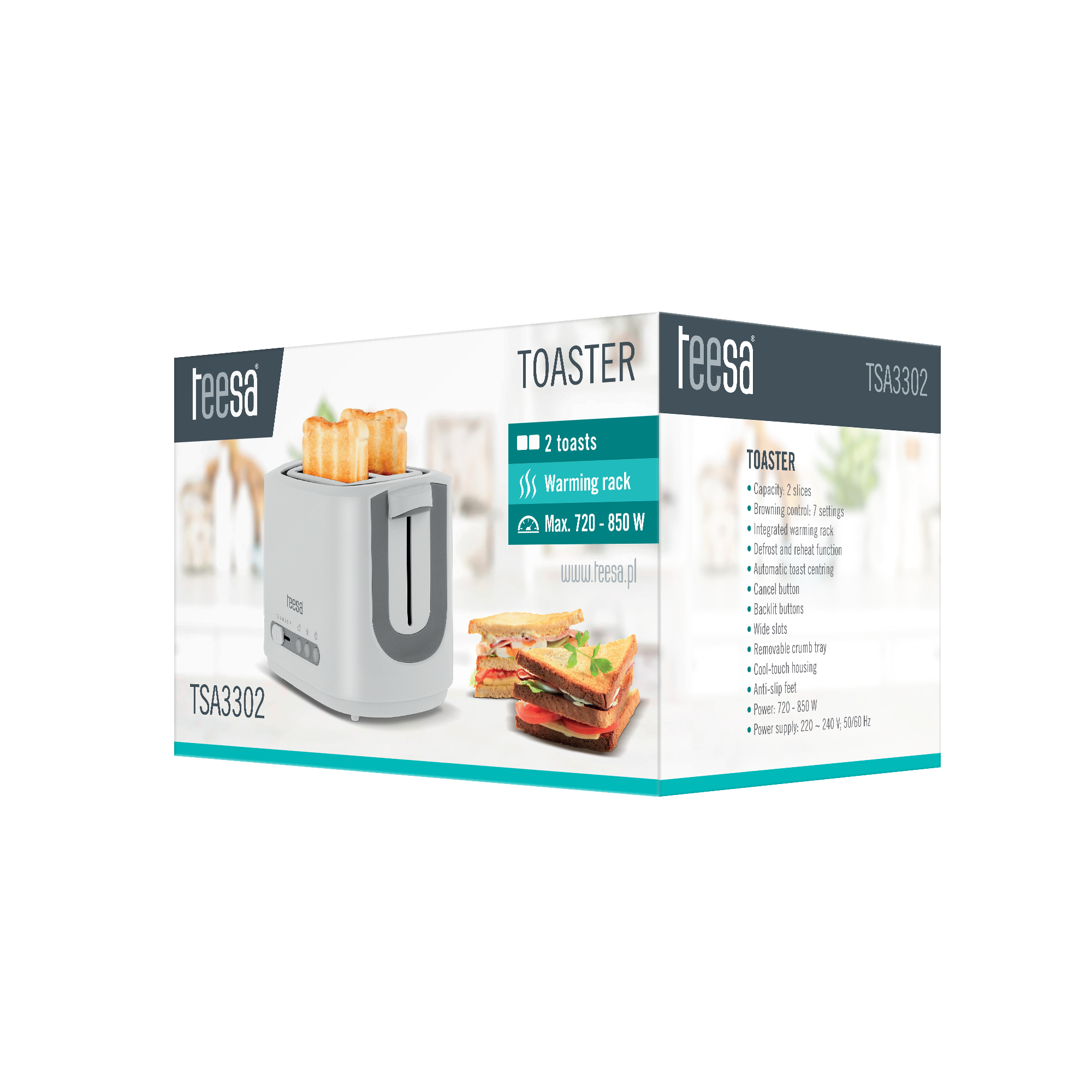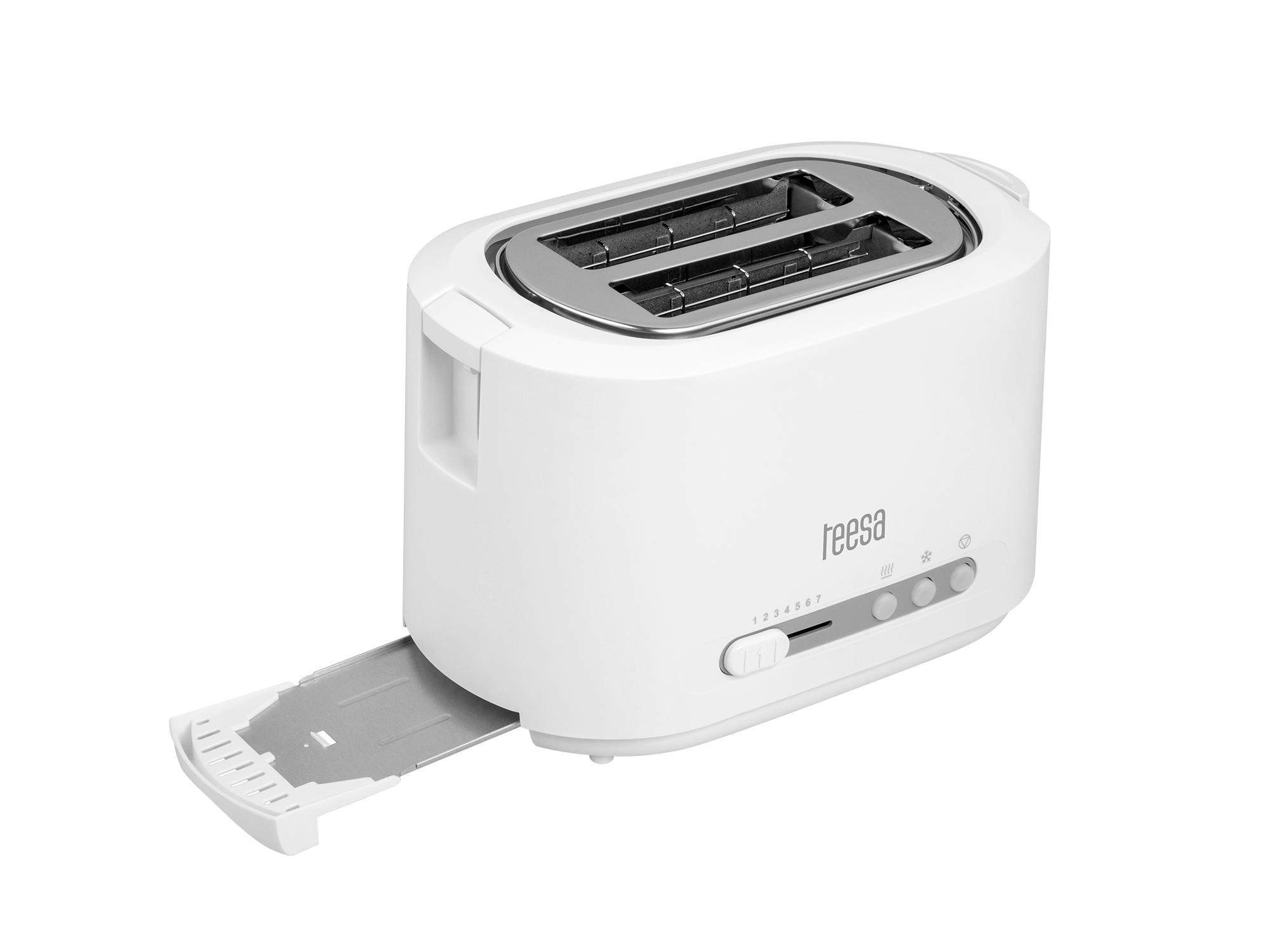 Toster Teesa posiada 7-stopniową regulację stopnia opiekania oraz przycisk zatrzymania, co sprawia, że każdy z domowników przygotuje grzanki według własnych preferencji. Ponadto, funkcja automatycznego centrowania sprawi, że tosty będą zawsze równomiernie wypieczone.
