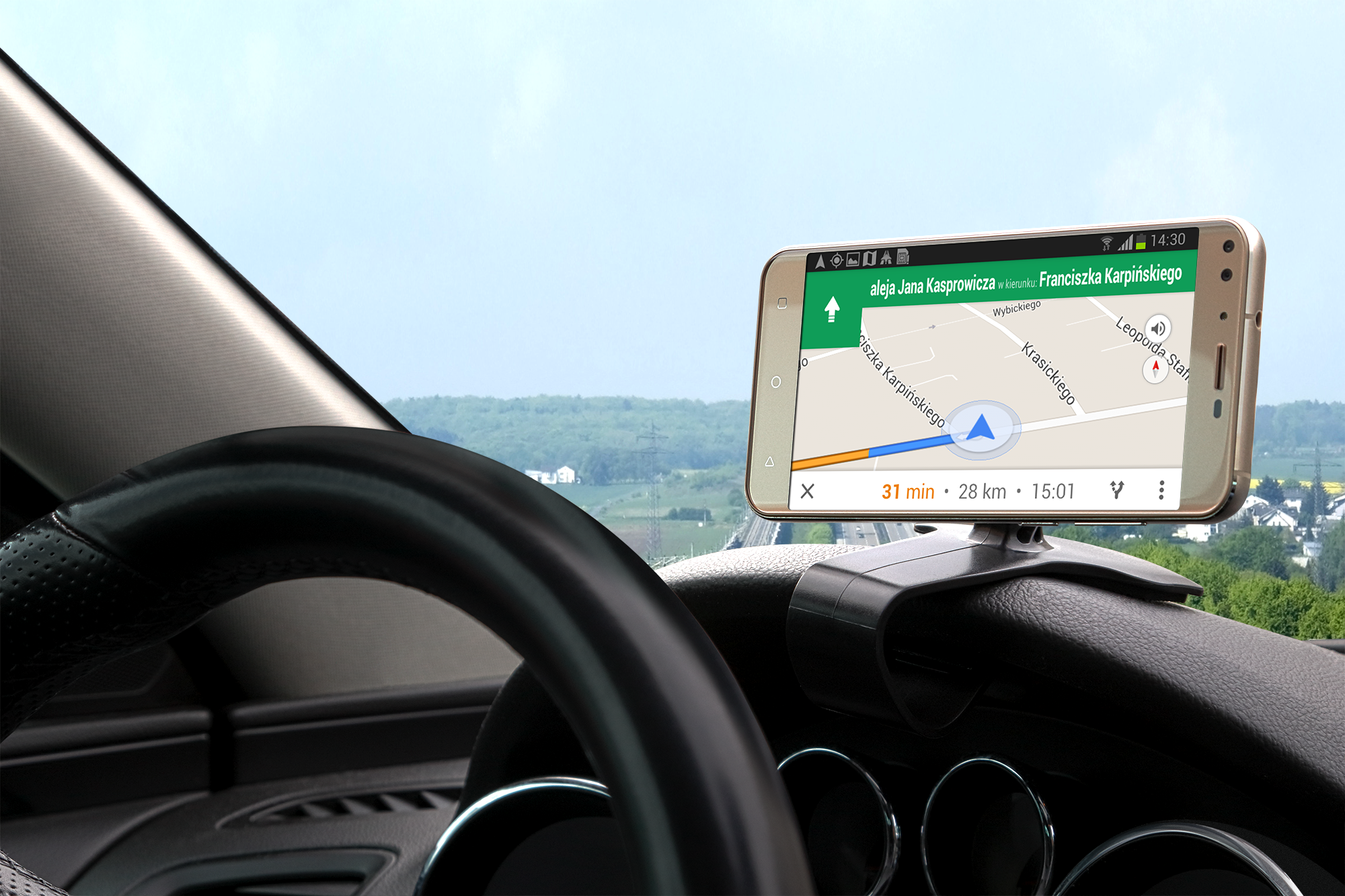 Zakrzywiona podstawa odpowiednia do montażu na większości desek rozdzielczych