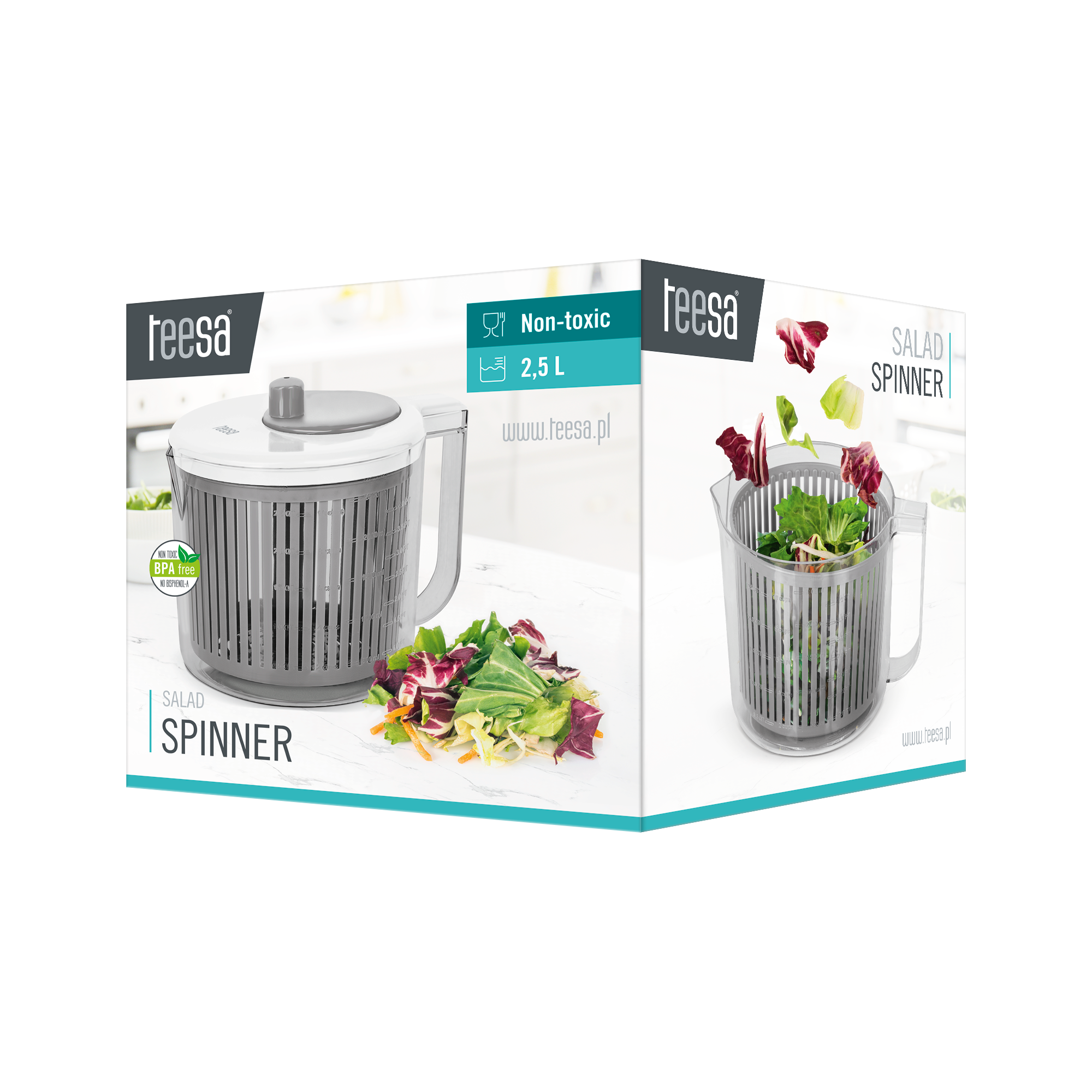 Wirówka do sałaty Teesa o pojemności 2,5 l to akcesorium, które przyda się zarówno w kuchni, jak też na campingu czy działce. Łatwość użycia, sprawia, że pozwoli Ci ona szybko odsączyć sałatę, szczypior czy natkę pietruszki, a tym samym usprawni proces przygotowywania ulubionych posiłków dla całej rodziny.