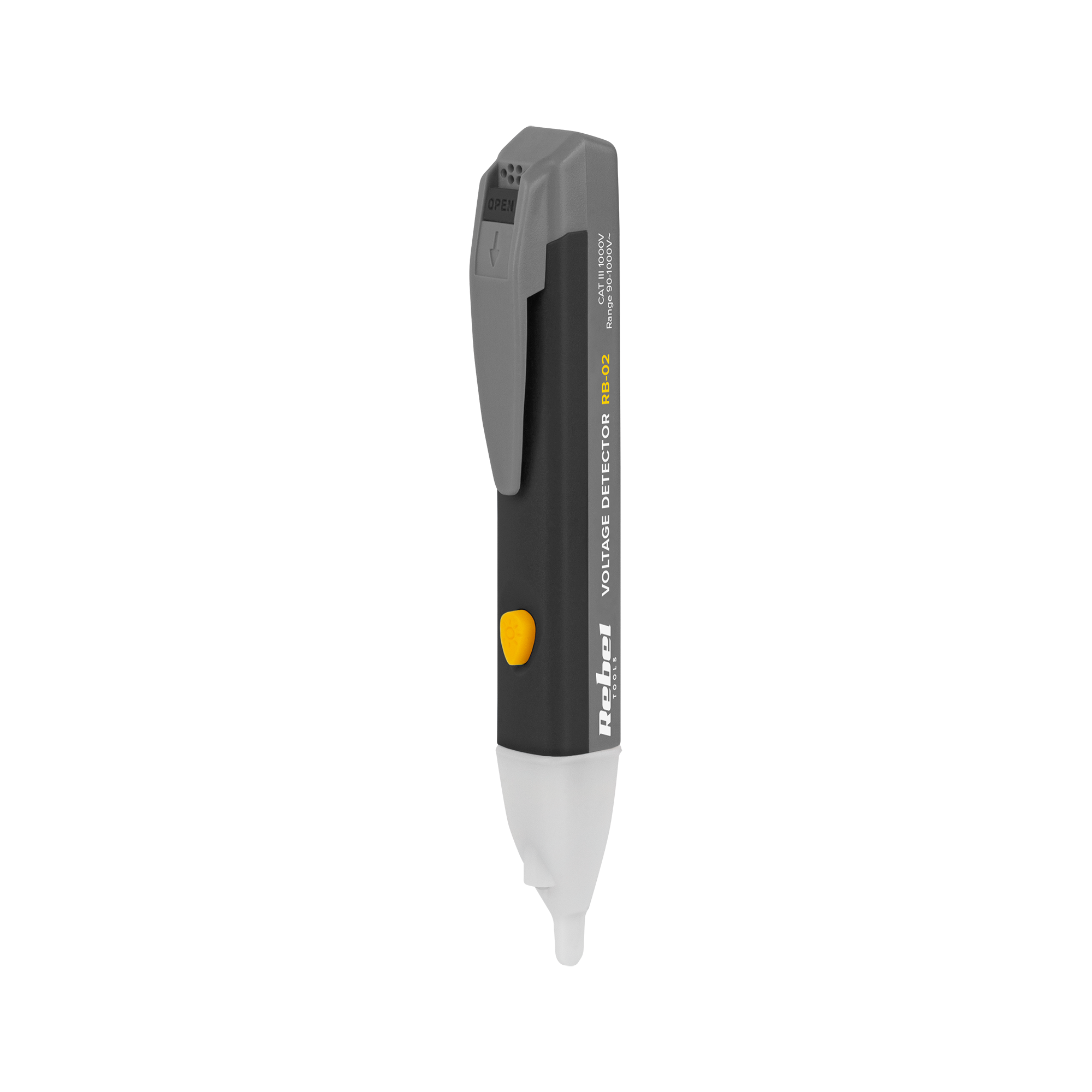 Detektor napięcia REBEL RB-02 obsługuje zakres wykrywania od 90 do 1000 V AC, co umożliwia skuteczne sprawdzanie napięcia w różnych instalacjach elektrycznych. Dzięki tej funkcji, możesz z łatwością monitorować i oceniać bezpieczeństwo systemów elektrycznych.